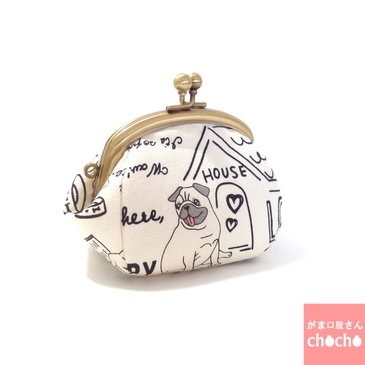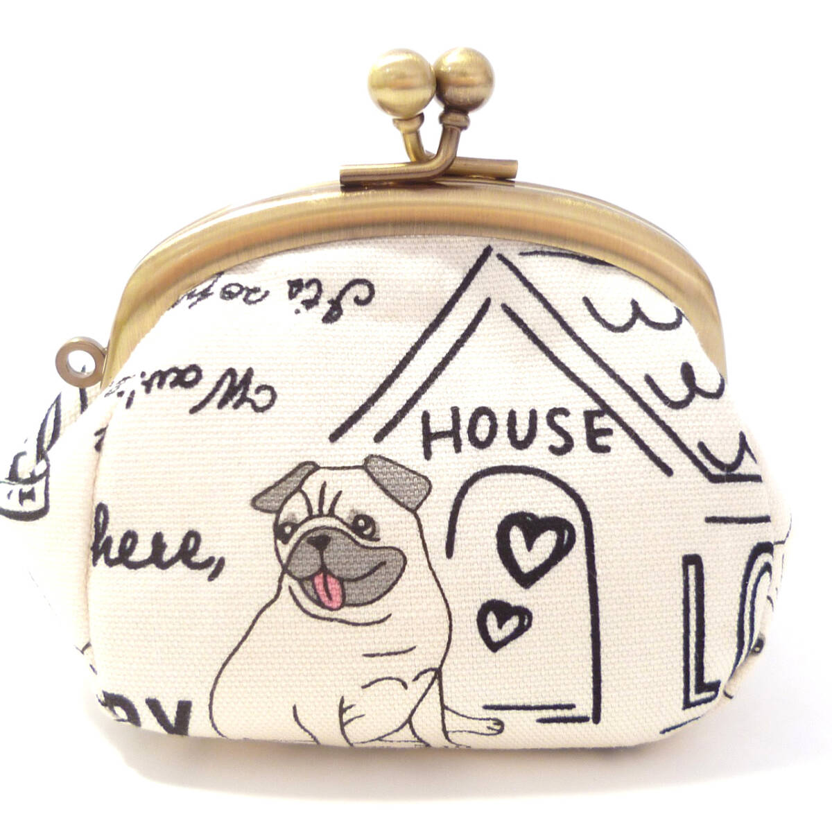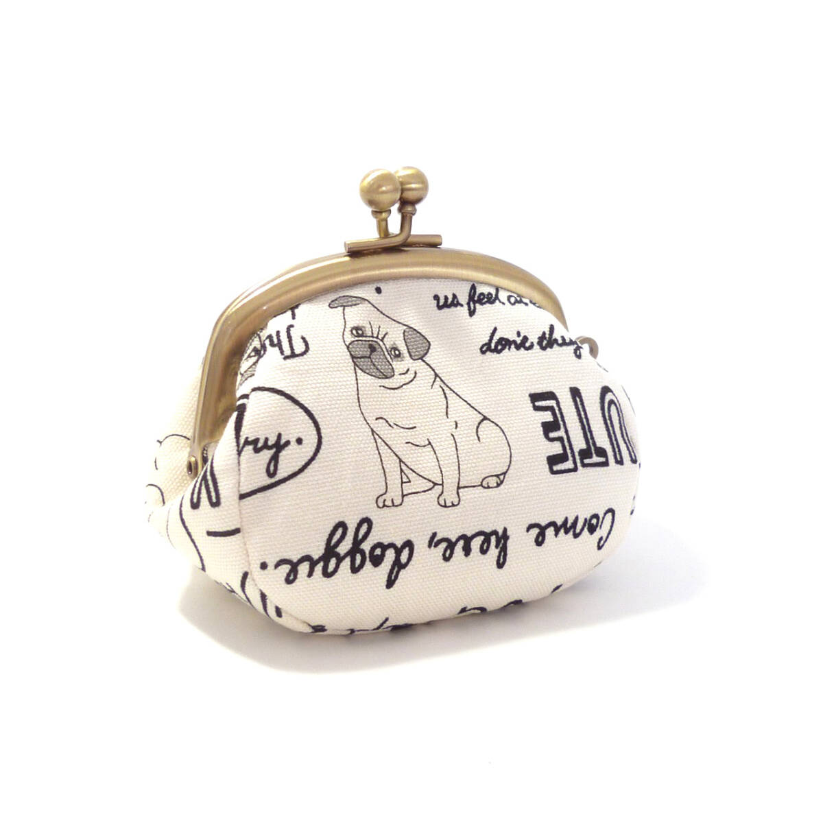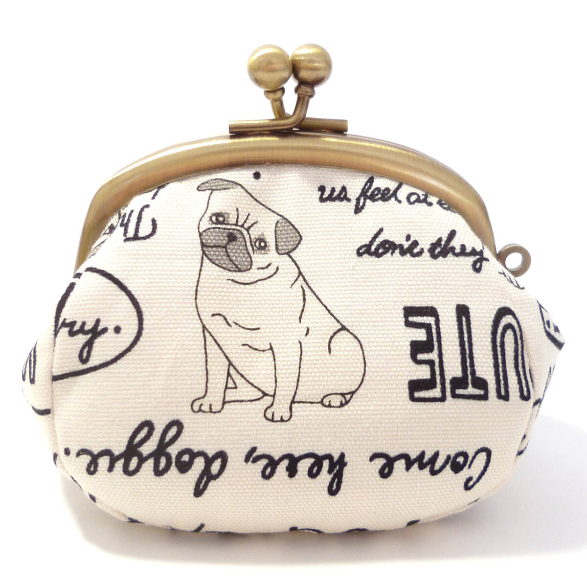 がま口小銭入れ おちゃめなパグ柄 犬柄 ワンコ コインケース ハンドメイド G150