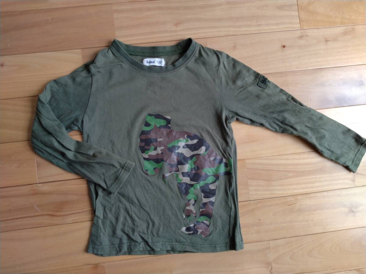 BOBSON☆ボブソン☆恐竜の迷彩柄☆長袖シャツ☆カーキ☆130サイズ