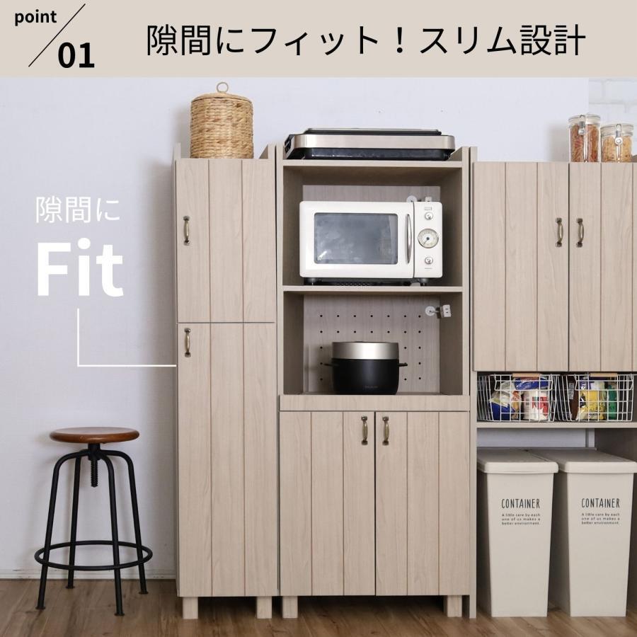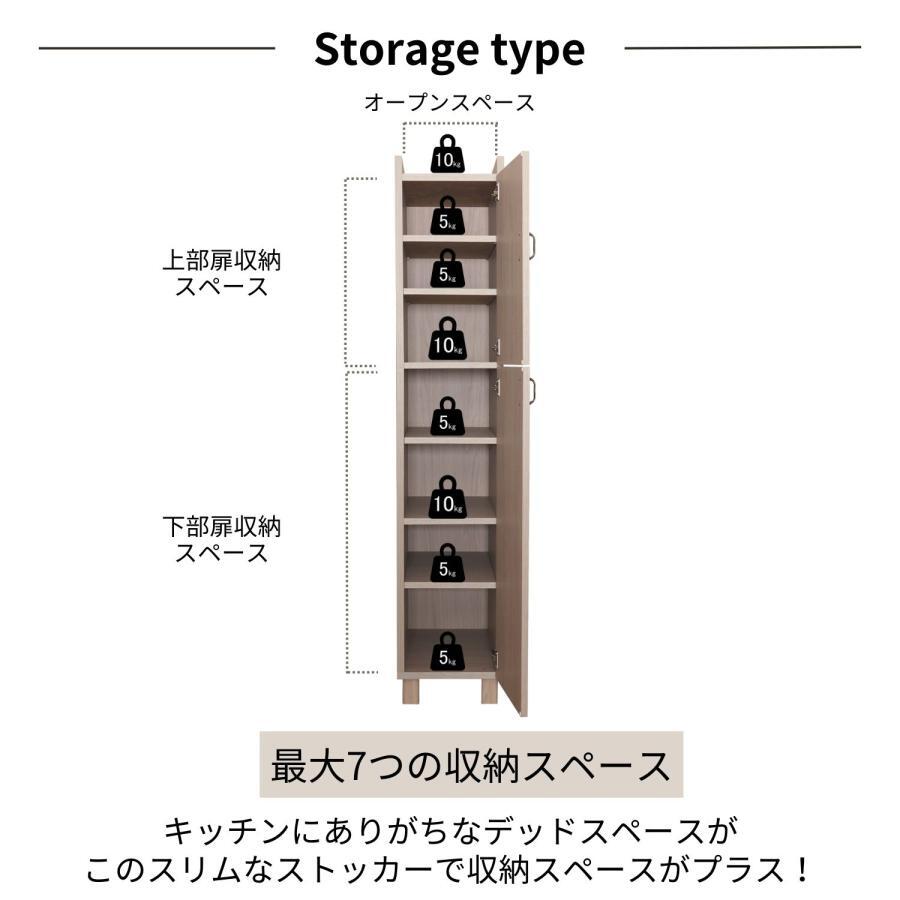 | コメント | 幅31cmの超スリムなキッチンストッカー(収納庫)です。調味料、缶詰、お菓子、ペットボトルからキッチンペーパー、スポンジまで、まとめておしゃれに隠して収納できます。 天板は5センチ下がって設計してありますので収納した物の落下をふせいで安心してお使いいただけます。天板耐荷重は10キロです。また、グレージュのカラーはとても素敵ですよ。 上下二枚の扉で隠す収納が楽しめます。キッチンだけでなくリビングで本、小物の収納とかサニタリー収納としてタオル、洗剤等の収納にも大活躍します。 ライフスタイルに合わせてお好みの場所で便利のお使いいただける日本製の品質を感じる組み立て式家具です 。 ▼ 他の商品はこちら |