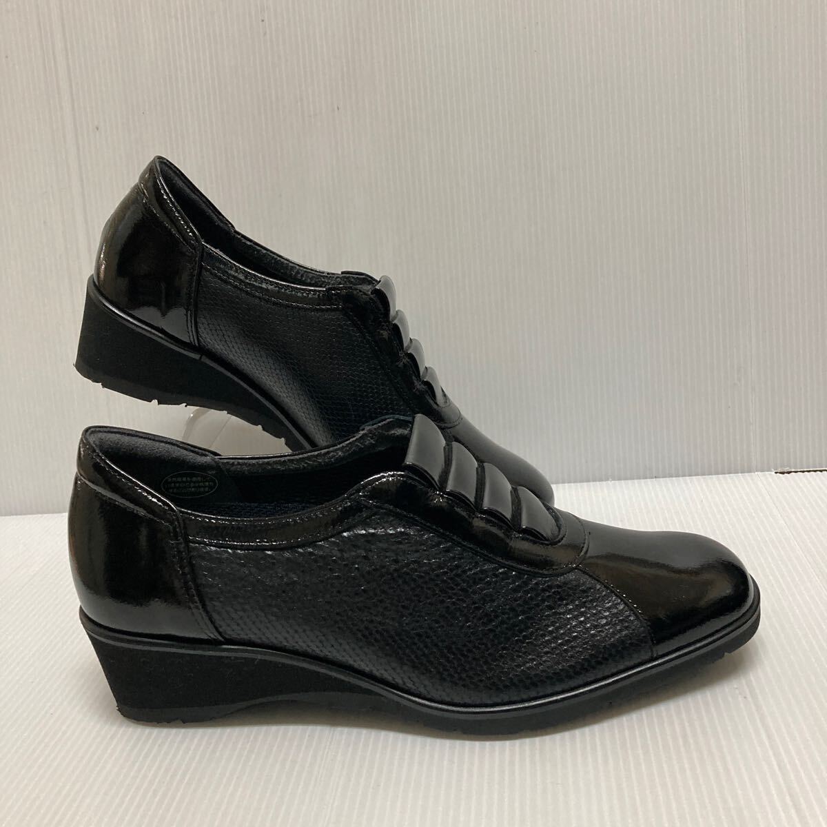 ●お買い得!高級婦人靴salon de gres A18539 BLプリ/BLE 22.5㎝ 幅EEEE 日本製 ウェッジヒール高4.5㎝ サイドゴムで履きやすい