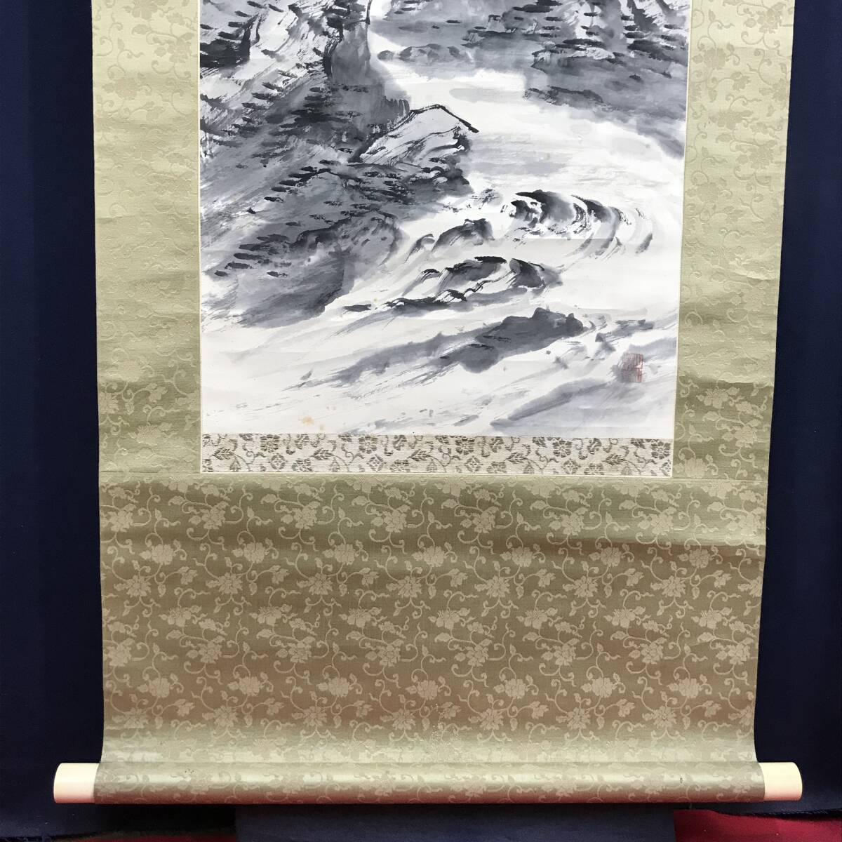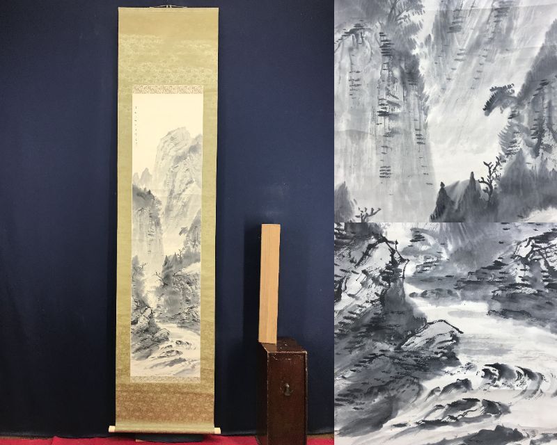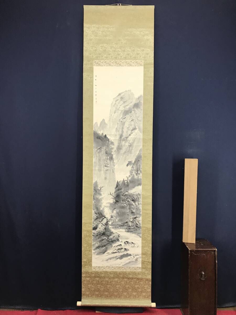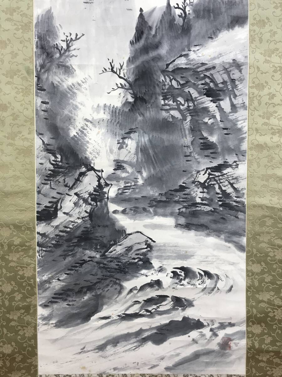 真作/河村李軒/渓山水図/渓谷山水図/山水図/掛軸☆宝船☆AF-562