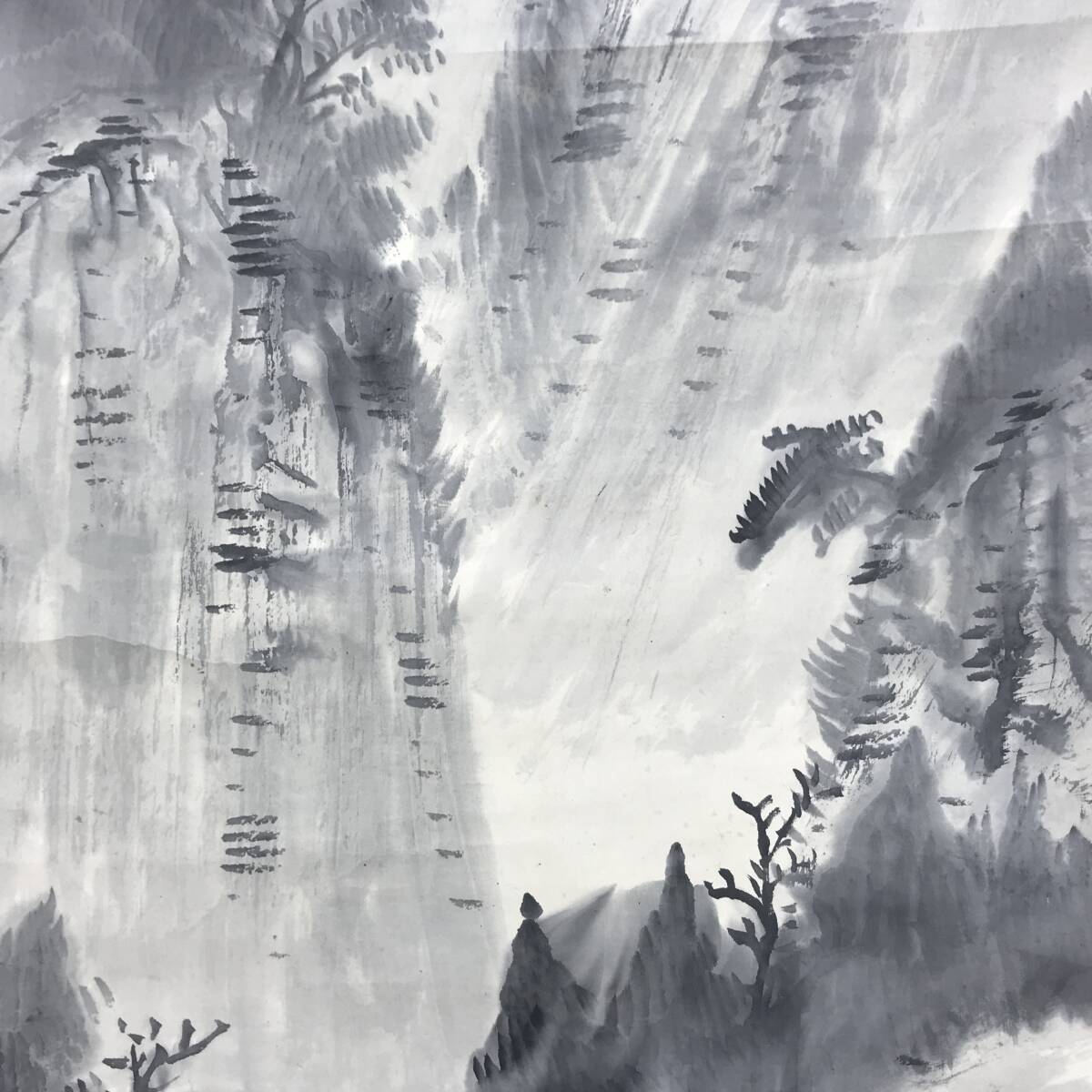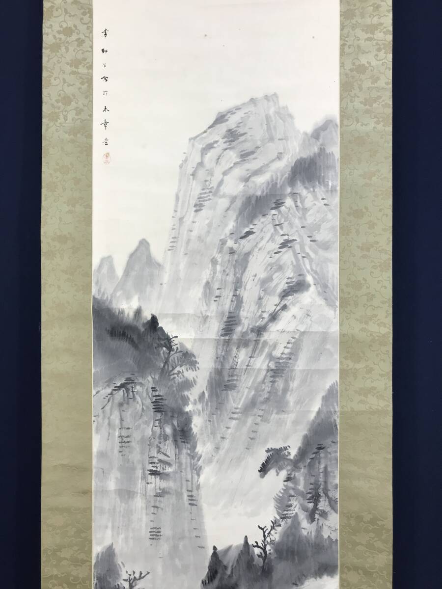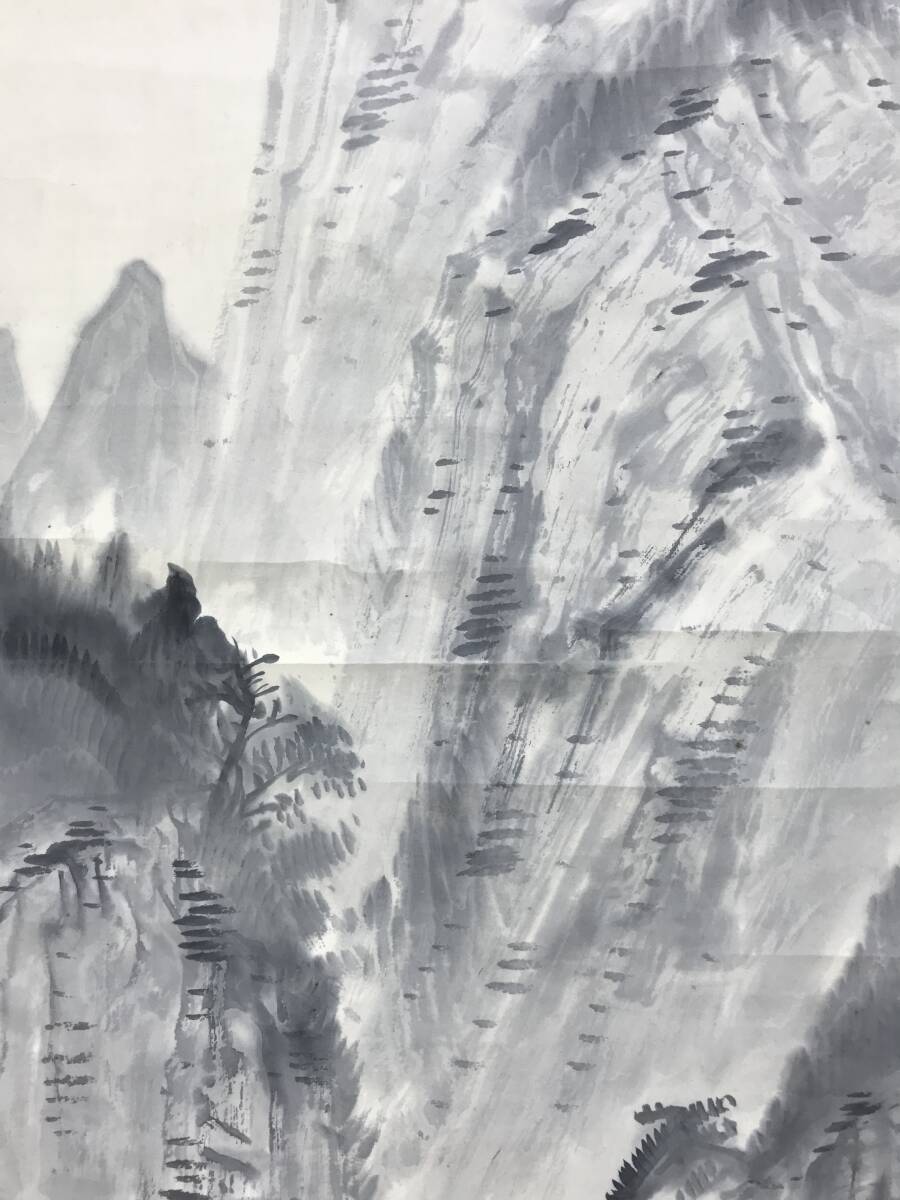 真作/河村李軒/渓山水図/渓谷山水図/山水図/掛軸☆宝船☆AF-562