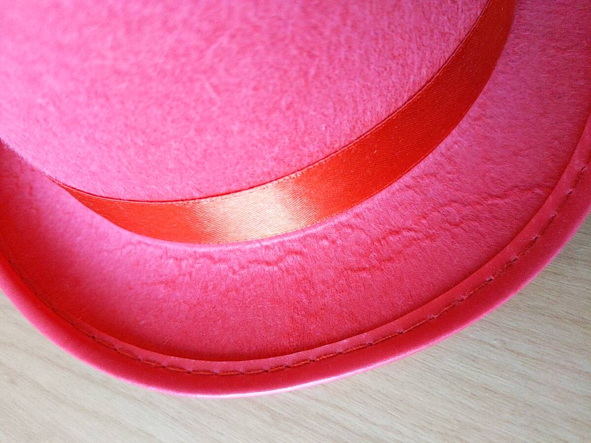 ★帽子 ハット  キッズ(54)  フエルト生地 中古  ★送料無料●くすみ赤 レッド●かっちりした型