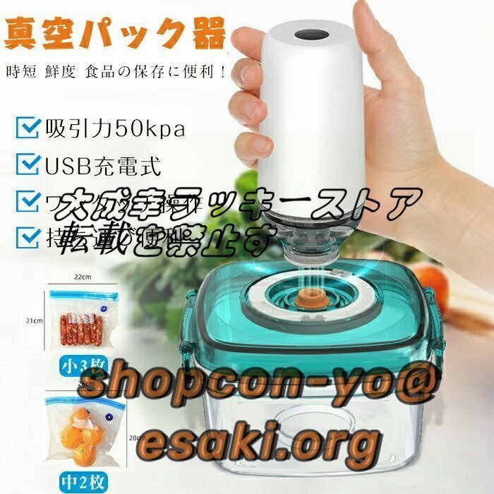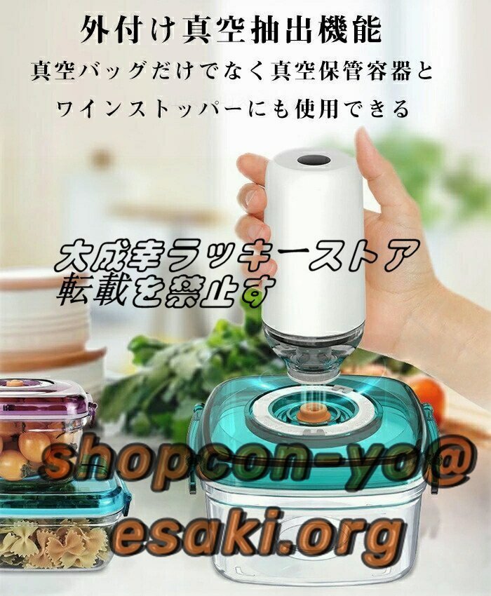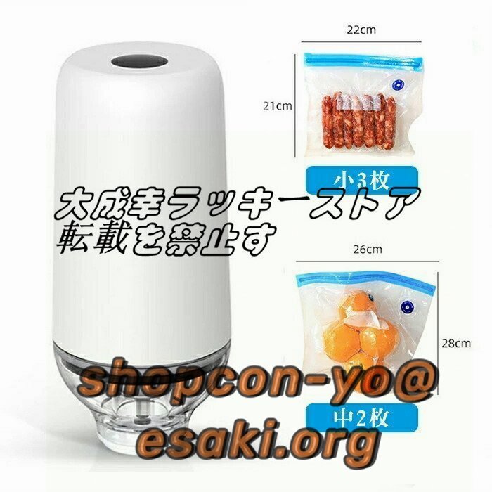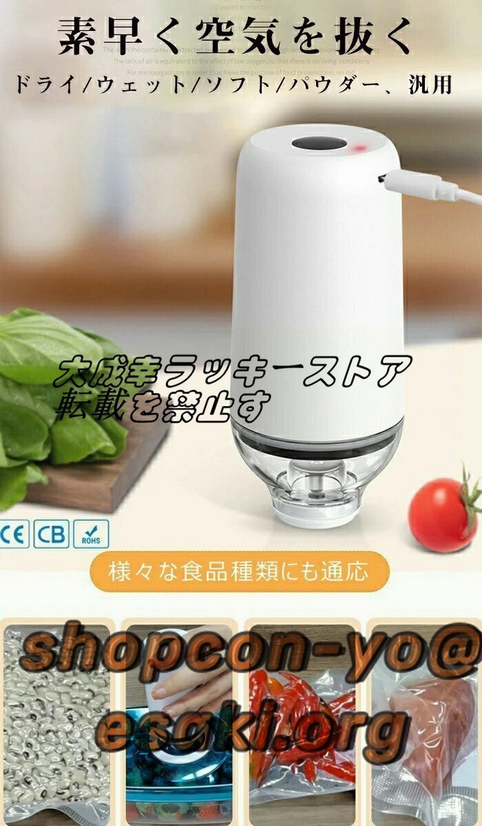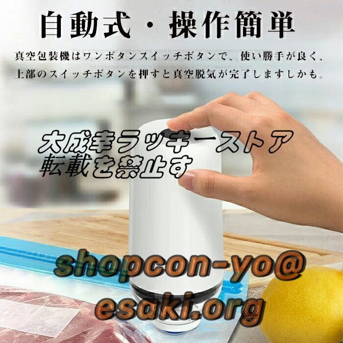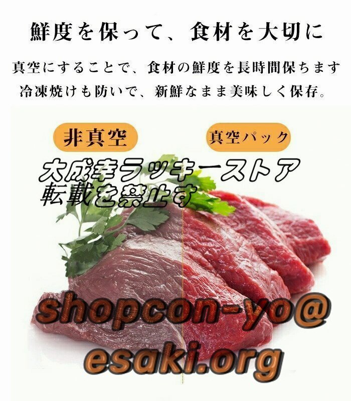 【家庭用?旅行用真空パック器】新鮮な果物、肉類、海鮮、豆類、お菓子や野菜のそのままの味と水分を保つことができる 食品保存の真空パック器です。食品真空パック袋はもちろん、布団収納袋?保存容器?真空カバーなどにも対応できます。外 部の空気、微生物、細菌、ほこりなどの汚染物質遮断して、食品の鮮度を保持することができます。密封保存することで消費 期限を1.5倍から2倍に保存期間を伸ばすことが可能となります。肉、野菜、骨董品、絵画などに真空シールして酸化から守る こともでき、布団、衣類、おもちゃ、化粧品、寝具、家庭用品などをまとめて圧縮すれば荷物の占めるスペースは減り、最大 75%のスペースが節約できます。抜群の圧縮能力があります!
