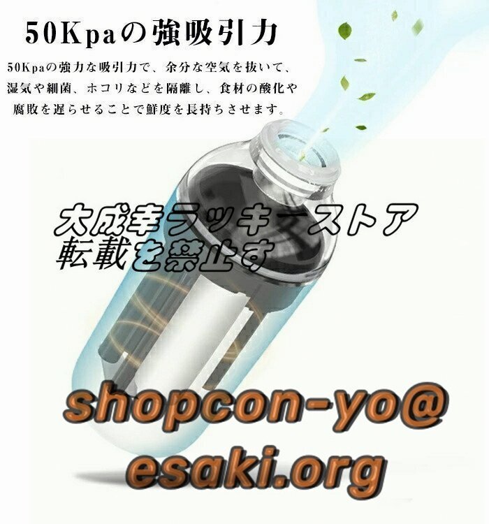 【50Kpaの強吸引力】50Kpaの強力な吸引力で、余分な空気を抜いて、湿気や細菌、ホコリなどを隔離し、食材の酸化や腐敗を遅らせることで鮮度を長持ちさせます。2種類の吸引ノズルを搭載し、あらゆる種類の真空バッグや真空容器に対応します。