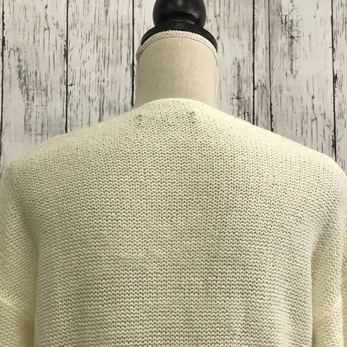 | 商品説明 | 商品名/サマーニット サイズ/表記なし 着丈55cm身幅52cm肩幅56cm袖丈37cm 素材/アクリル80%ナイロン20% 商品状態/やや傷や汚れあり、左後ろ袖汚れ、毛玉、生地不良 |