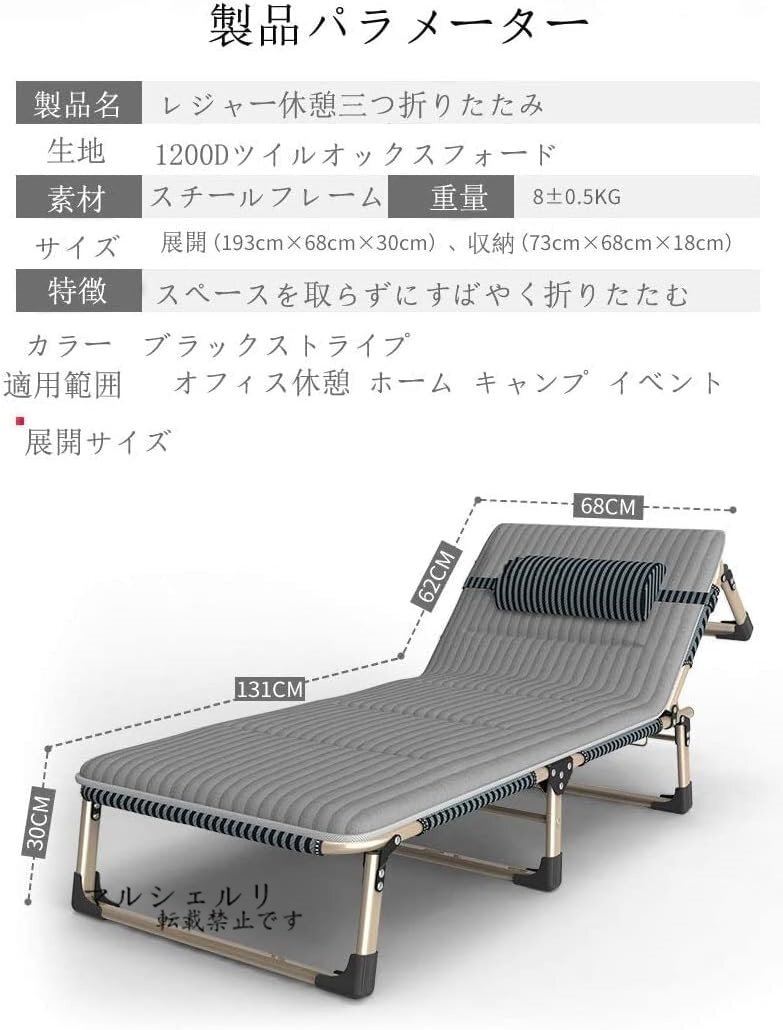 折りたたみベッド 三つ折り四脚折りチェアーベッド リクライニング式 簡易ベッド 通気性コンパクト アウトドアチェア リクライニングベッド
