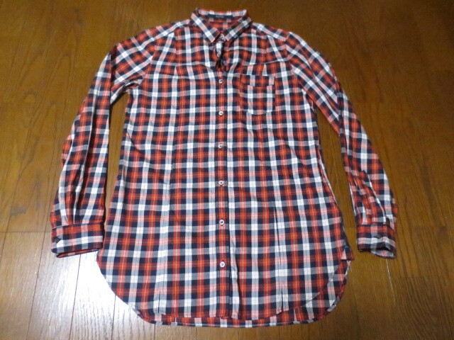 MACPHEE TOMORROWLAND マカフィー 長袖 コットンチェックシャツ 38 日本製 白×赤×紺 マチ付き