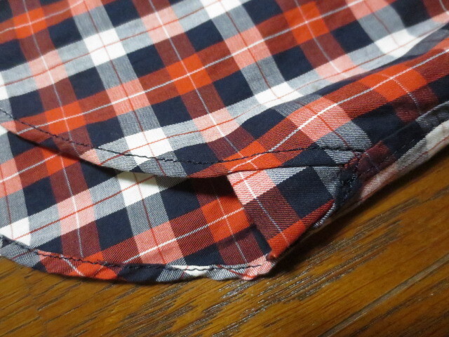 長袖  コットン マドラスチェックシャツ  マチ付き
