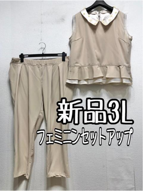 新品☆3Lベージュ系♪フェミニンセットアップ♪パーティ☆s627
