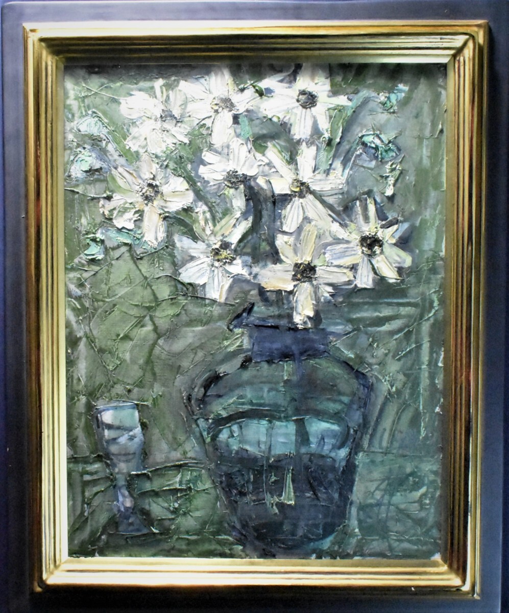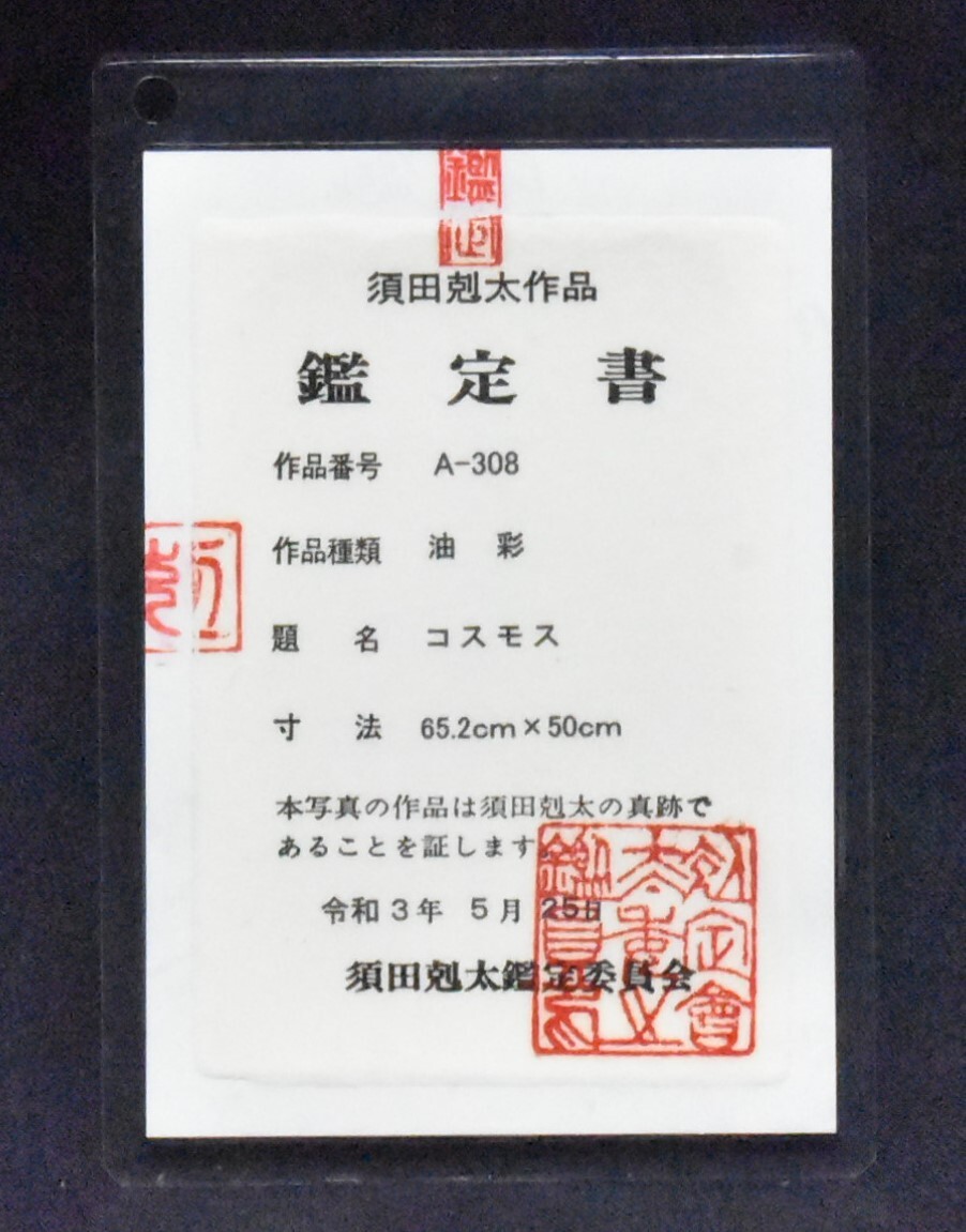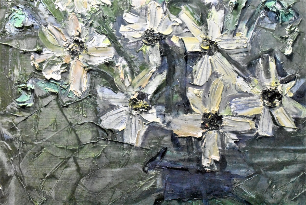![]() 須田剋太「コスモス」油彩 15P 大胆な筆使いで仕上げたコスモス。光を吸収して咲く姿は、まばゆいですね。 |