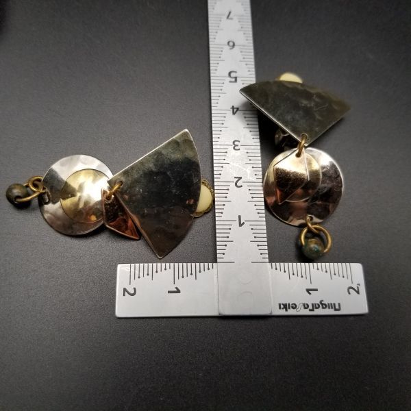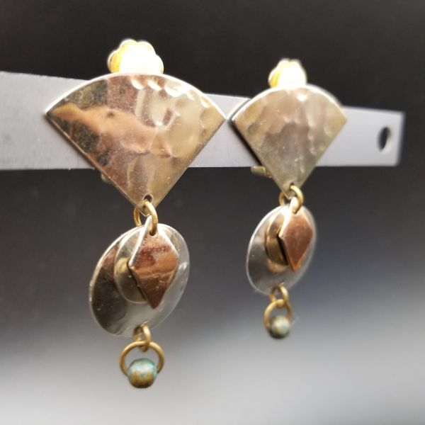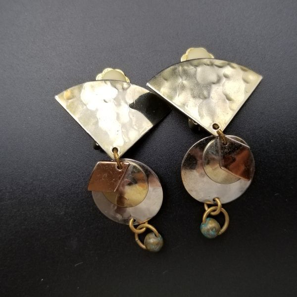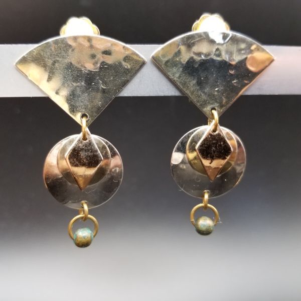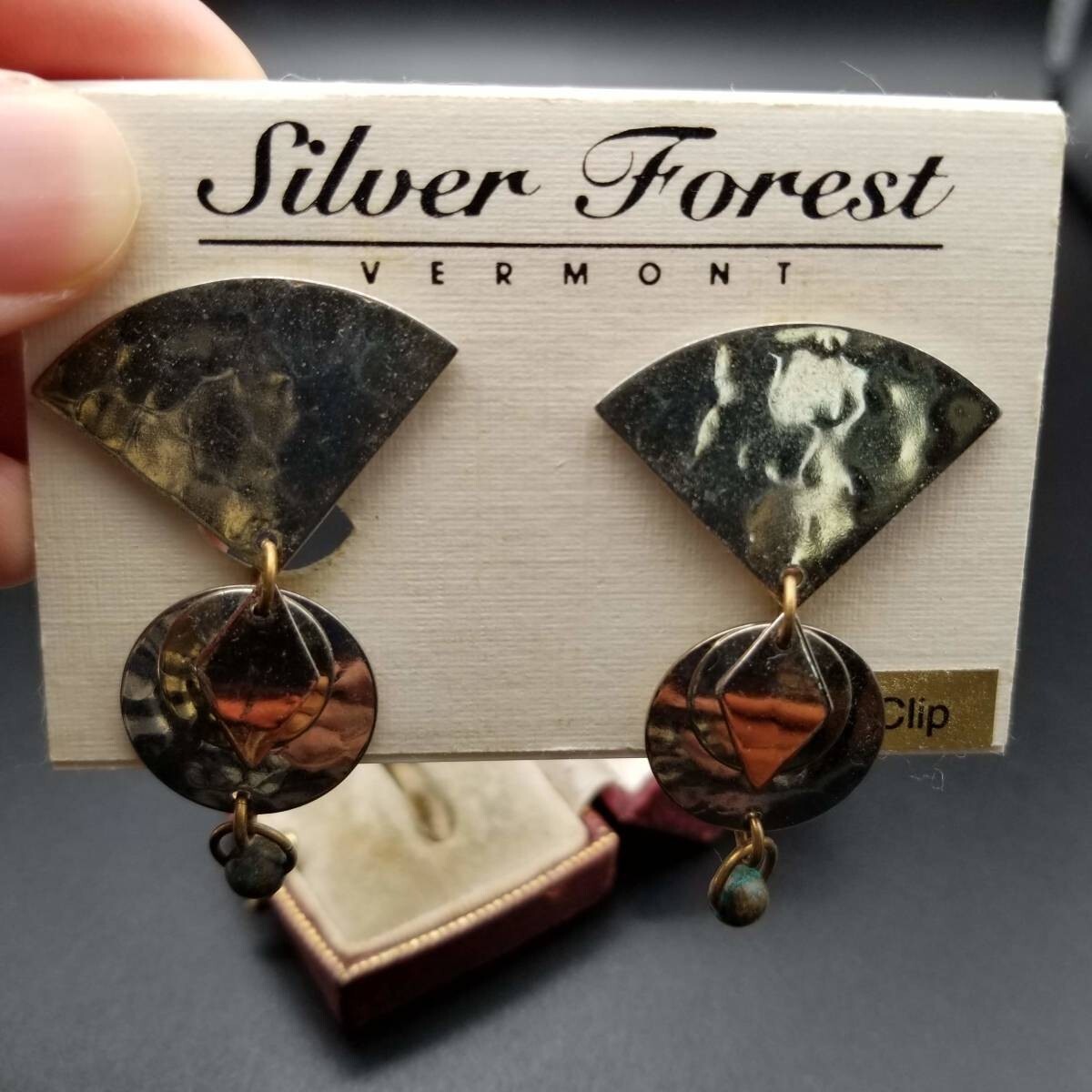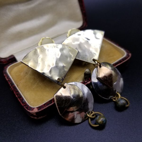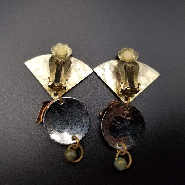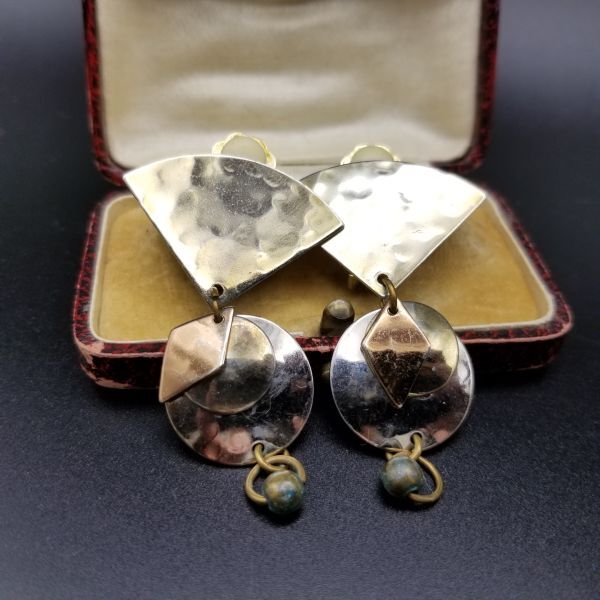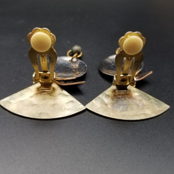 Silver Forest 扇と丸 米国 ヴィンテージ クリップイヤリング ファンシー シルバー/ゴールドトーン 槌目 ハンマー打ち Handcraft YNG22