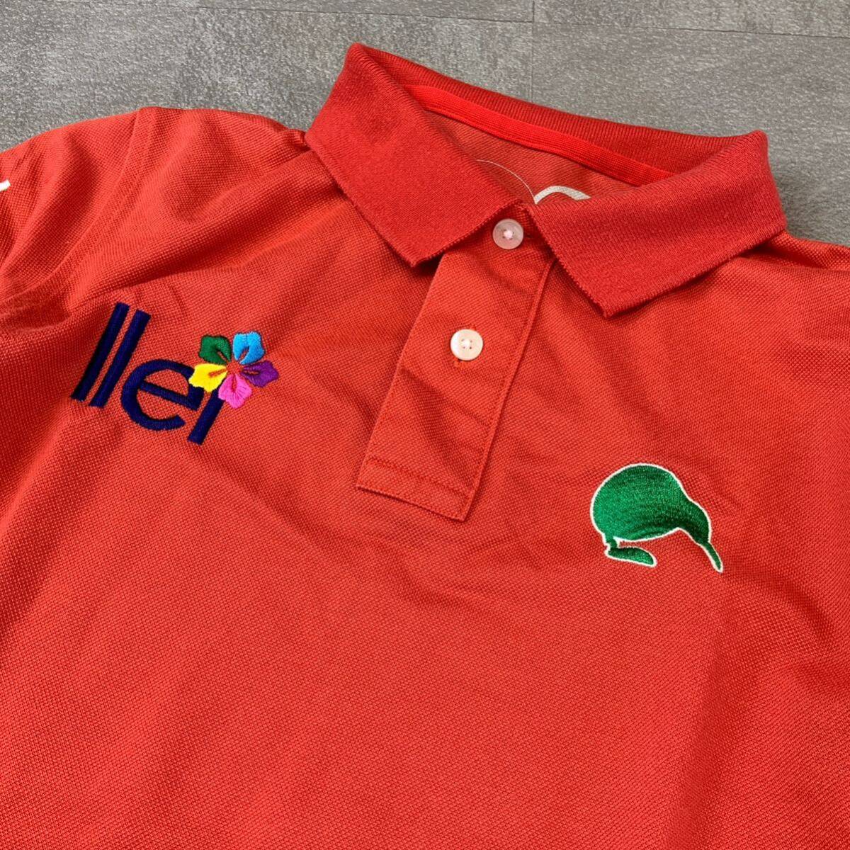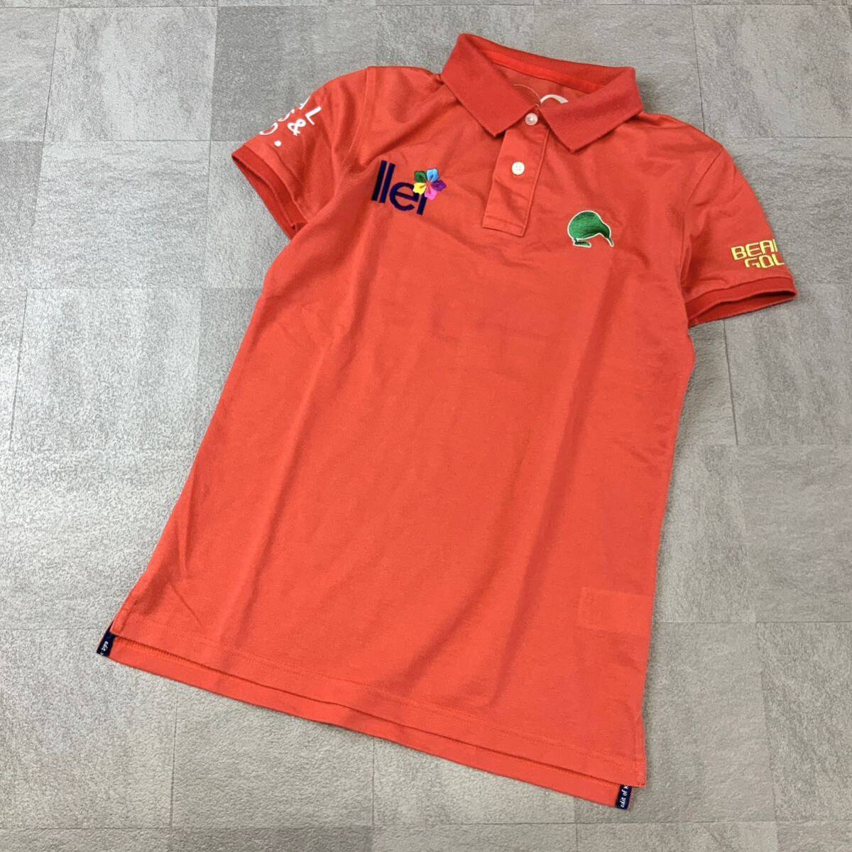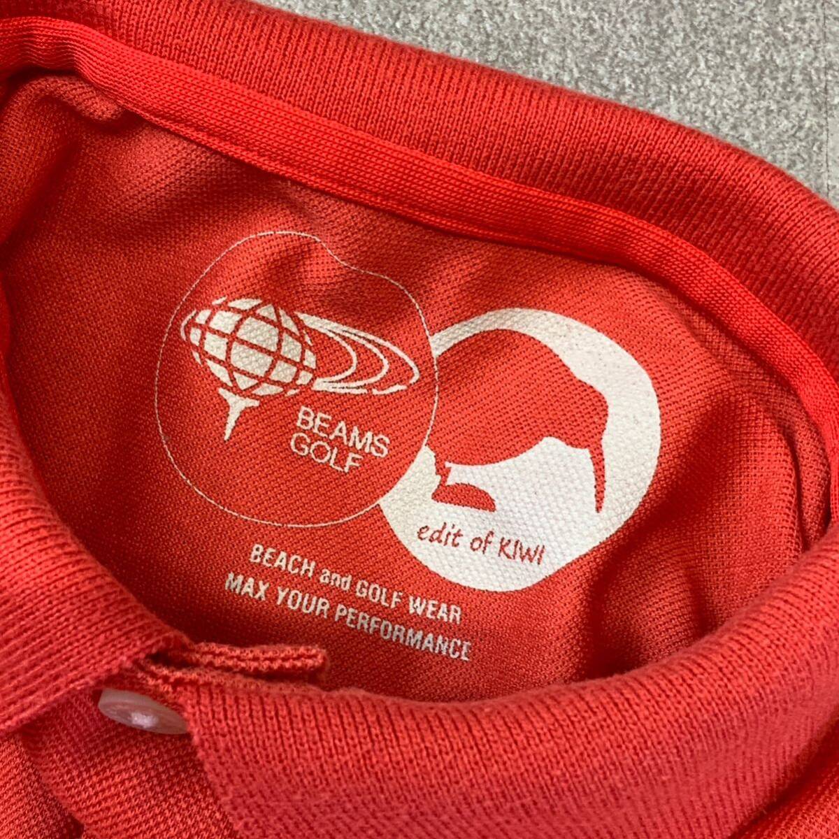 美品 BEAMS GOLF edit of kiwi ビームスゴルフ キーウィ刺繍 鹿の子 半袖 ポロシャツ レディース Mサイズ レッド系 ゴルフシャツ