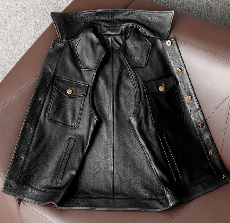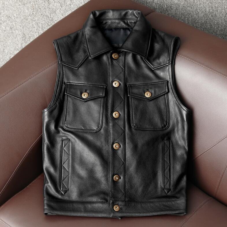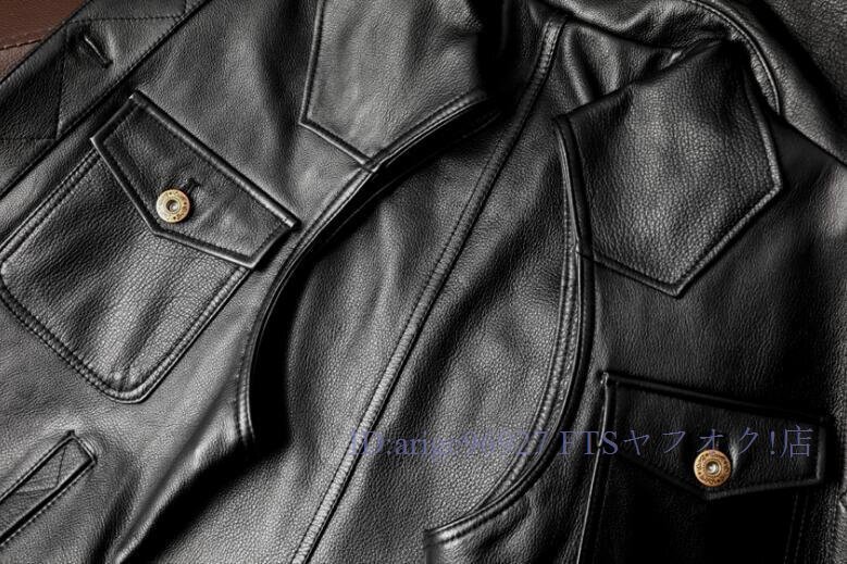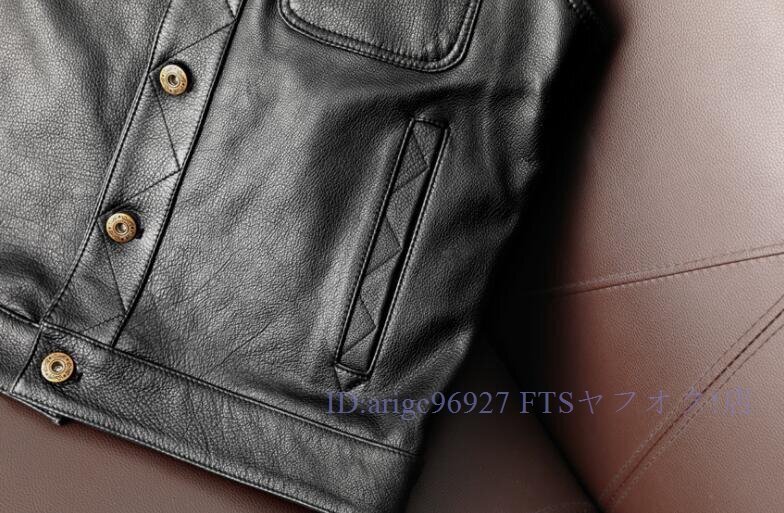 B7456☆新品メンズレザー ジャーキン ベスト 本革 牛革 バイクジャケット ライダース S~4XL 黒