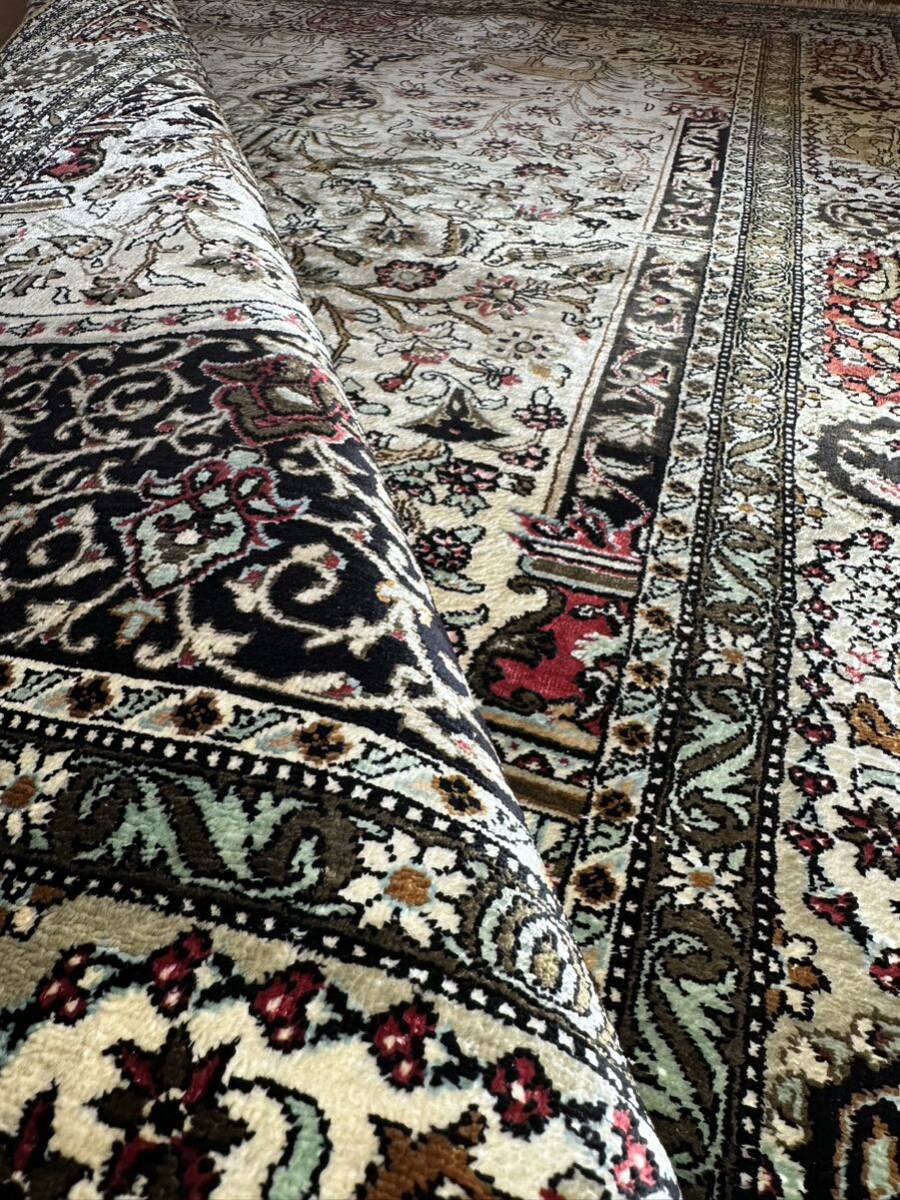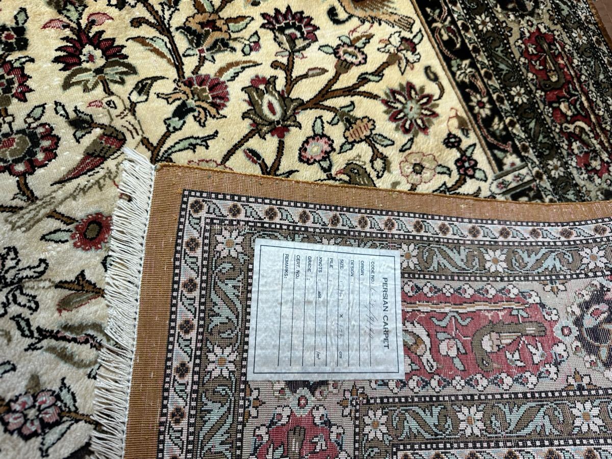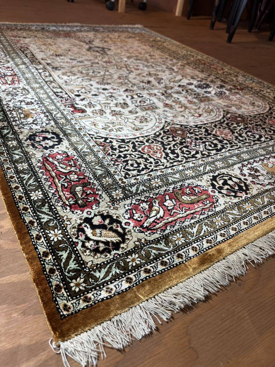最高級 ペルシャ絨毯 手織り イラン クム産 シルク100% 100万ノット 花鳥鹿花瓶文様 大判 152×102㎝ P152