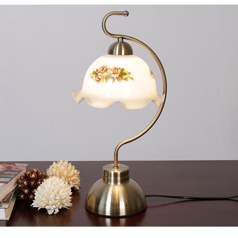 極美品 テーブルランプ レトロ フリル アンティーク調 デスクライト ベッドサイドランプ LED対応 アメリカン
