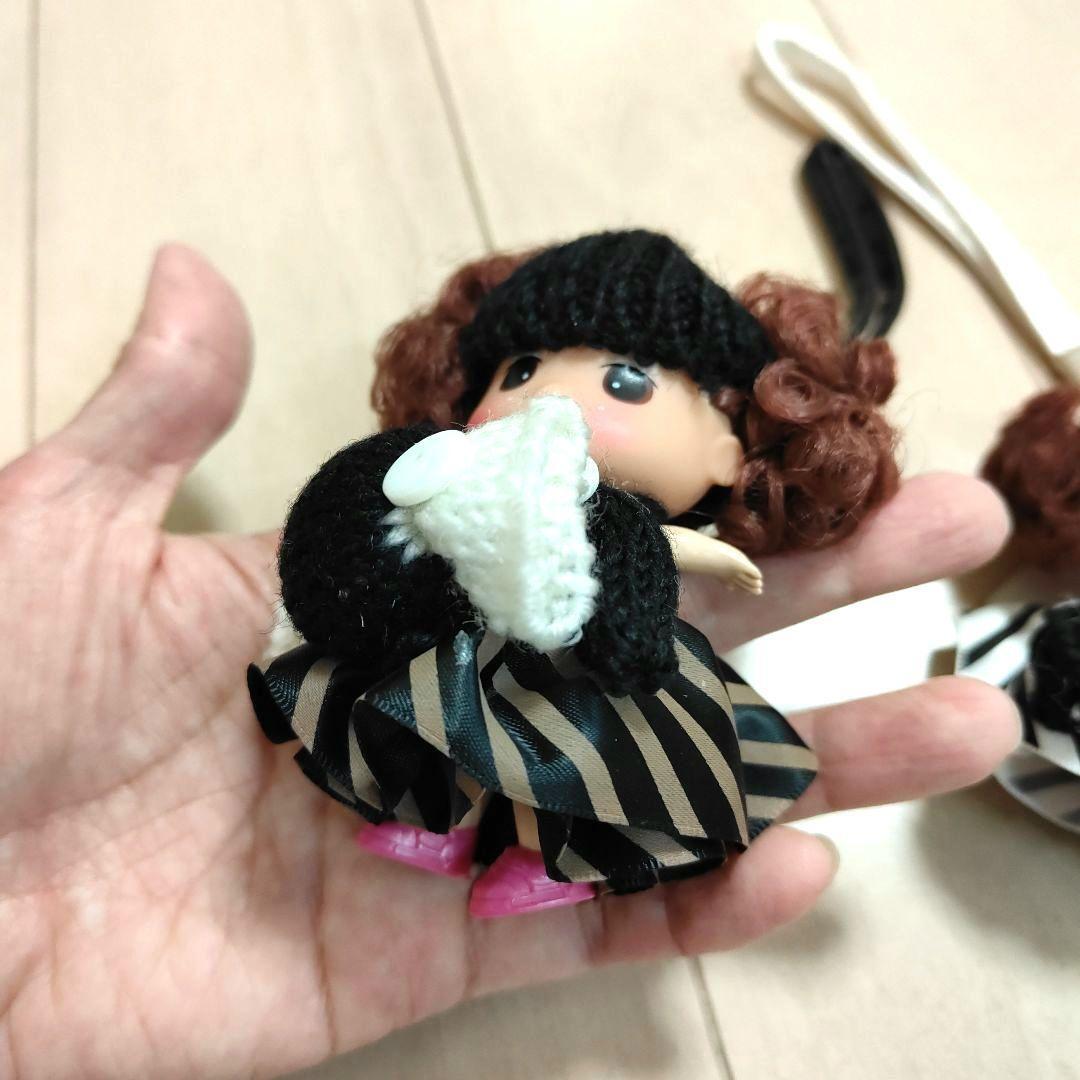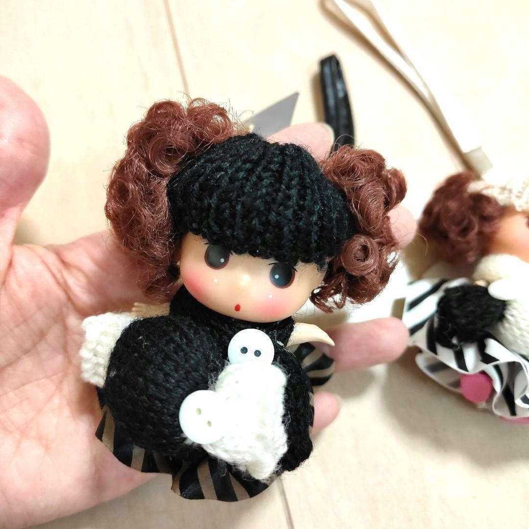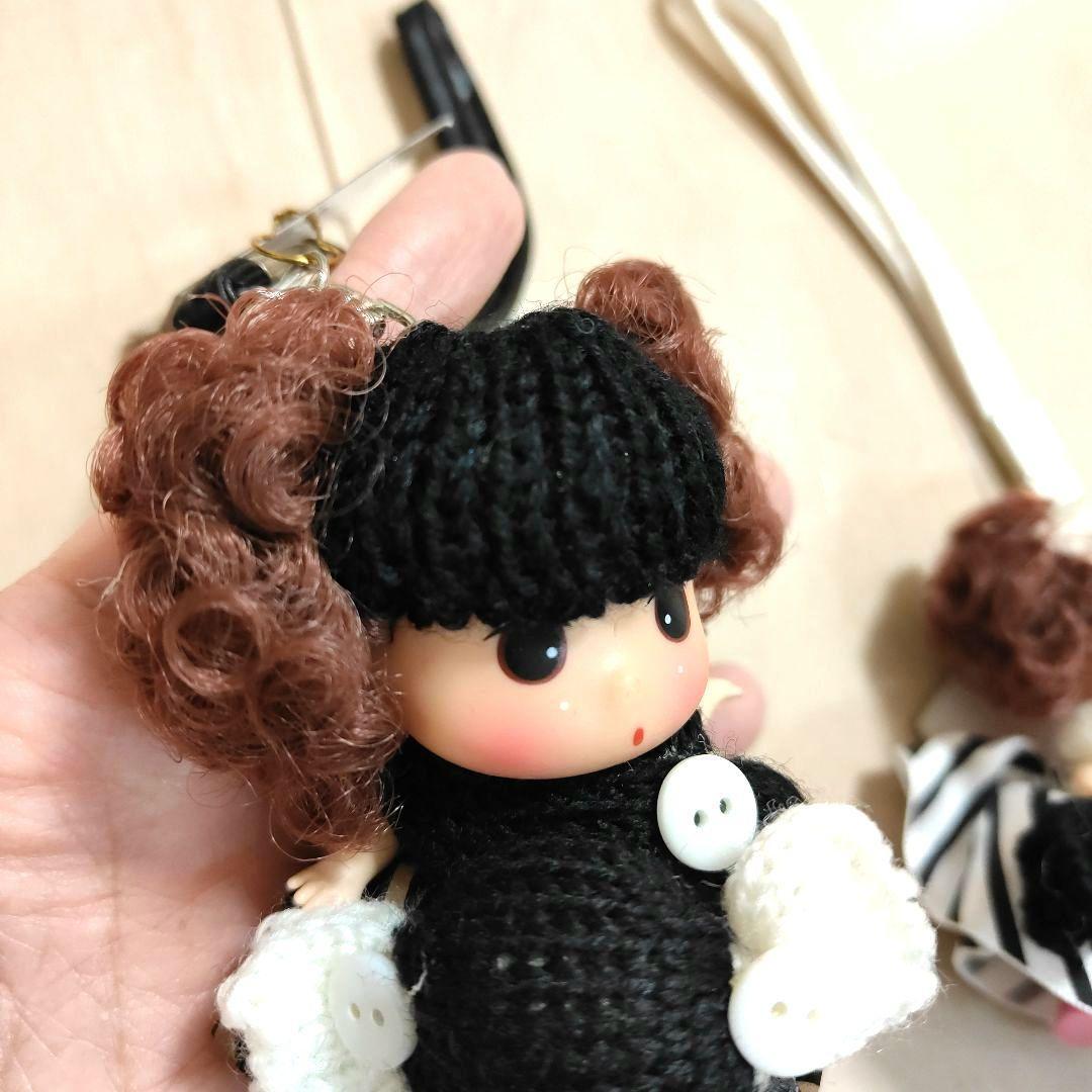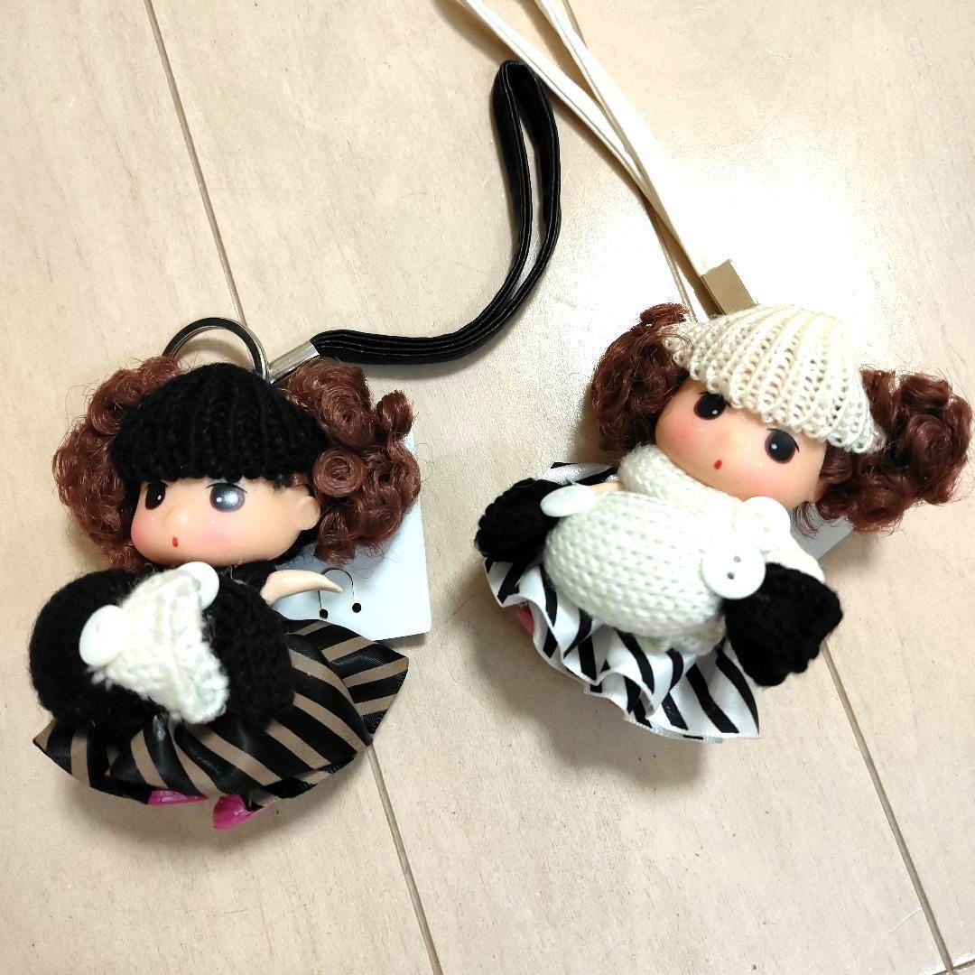 韓国マスコットホルダ 2体セット 巻き毛の女の子 ホワイトちゃん&ブラックちゃん