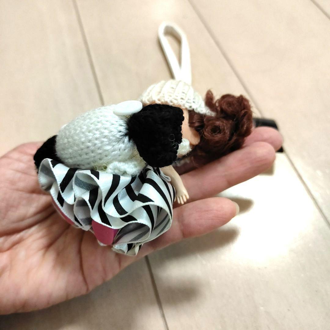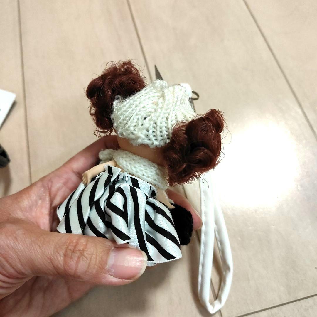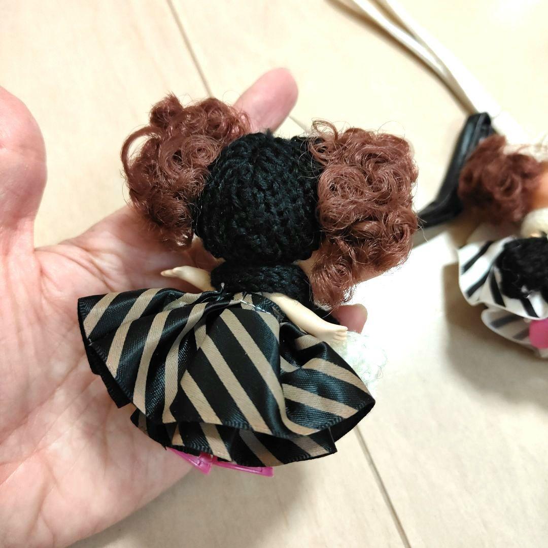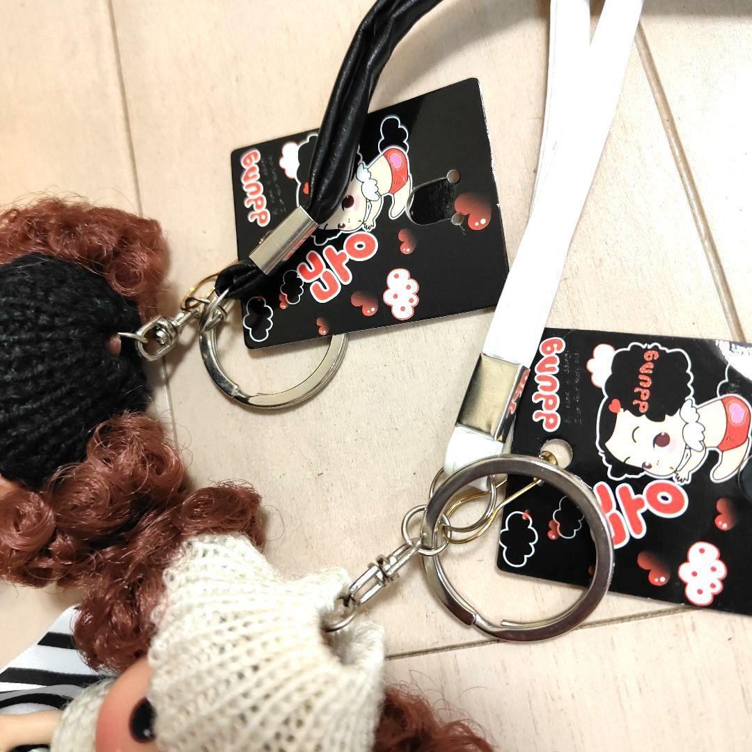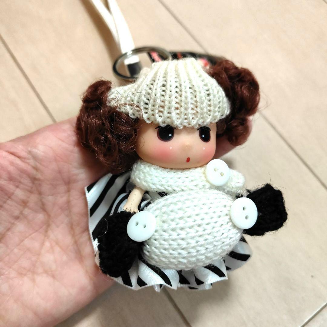 韓国マスコットホルダ 2体セット 巻き毛の女の子 ホワイトちゃん&ブラックちゃん