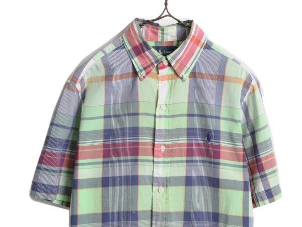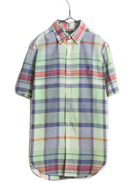 商品名 | 90s ラルフローレン インディアン マドラス チェック 半袖 ボタンダウン シャツ メンズ S / 90年代 オールド ポロ ワンポイント 半袖シャツ |