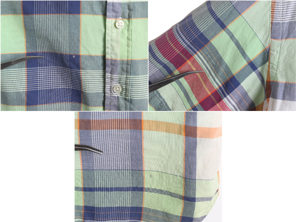 90年代のオールド 人気ブランド RALPH LAUREN の半袖ボタンダウンシャツです。 モデル名は、CLASSIC FIT 素材は、100% COTTON ( コットン ) 薄手の柔らかい着心地抜群の素材 着こむ事で独特の風合いが楽しめる ヴィンテージでも枯渇状態の本場インドで織られた 希少なインディアンマドラス生地が使用されています。 MADE IN INDIA ( インド製 ) 好配色、マルチカラーのマドラスチェック ラルフローレン定番のボタンダウンスタイル 左胸に定番のワンポイント ポニー刺繍 クラシックフィットのゆったりとした綺麗なシルエット 1枚で様なる、着回しのきく商品です。 |