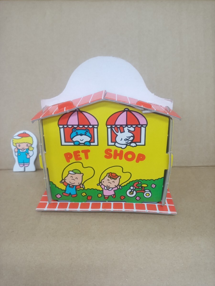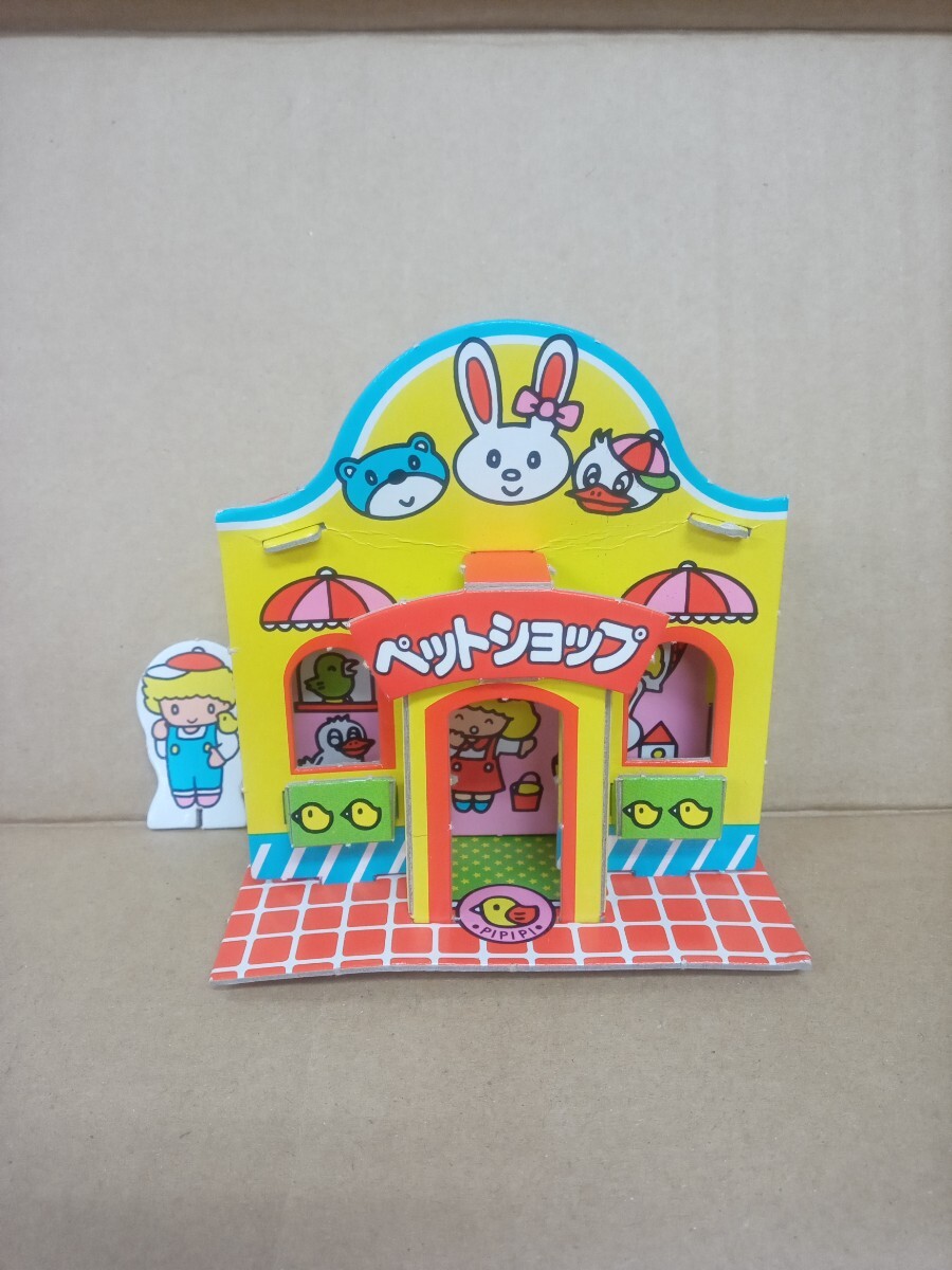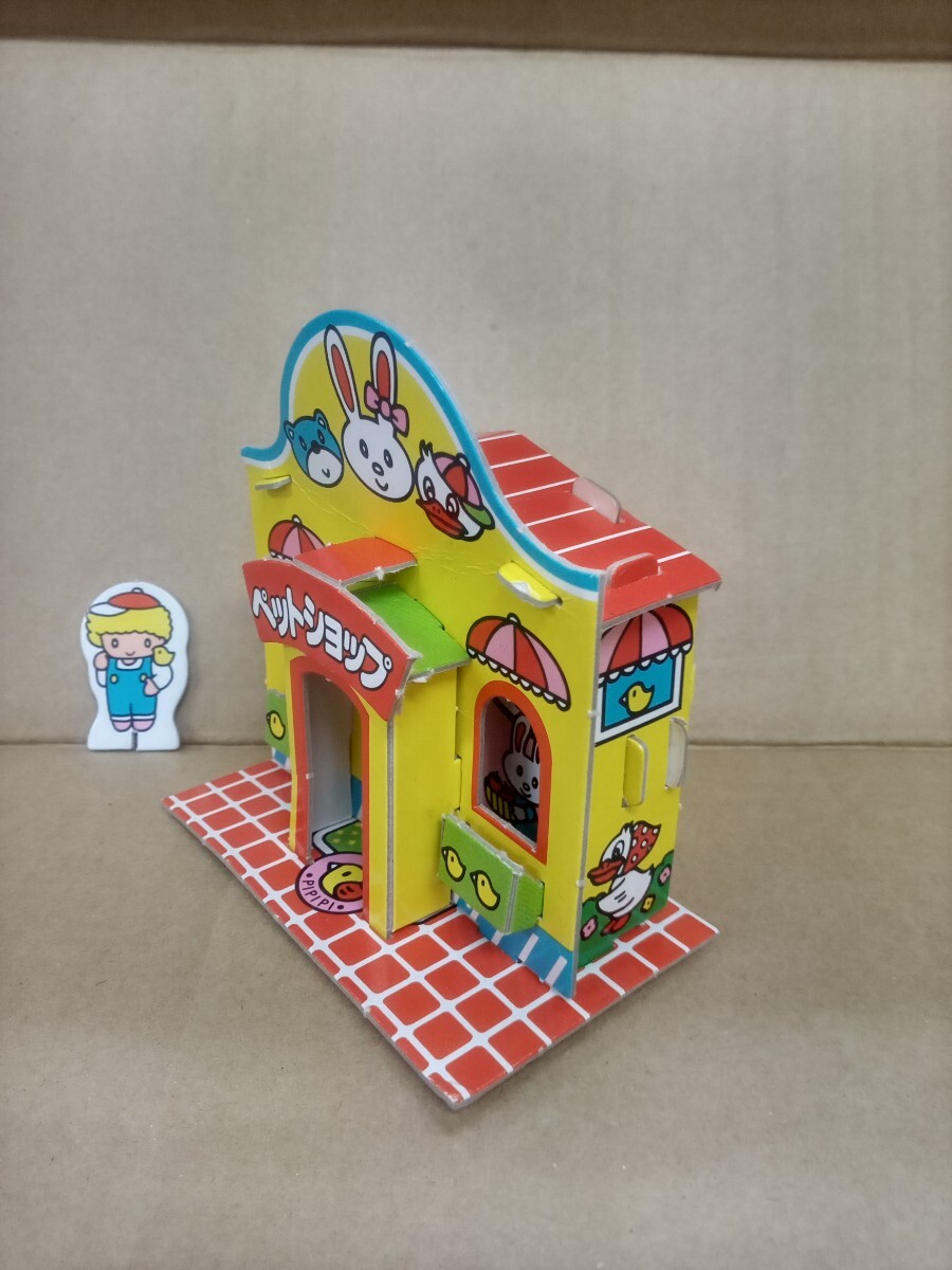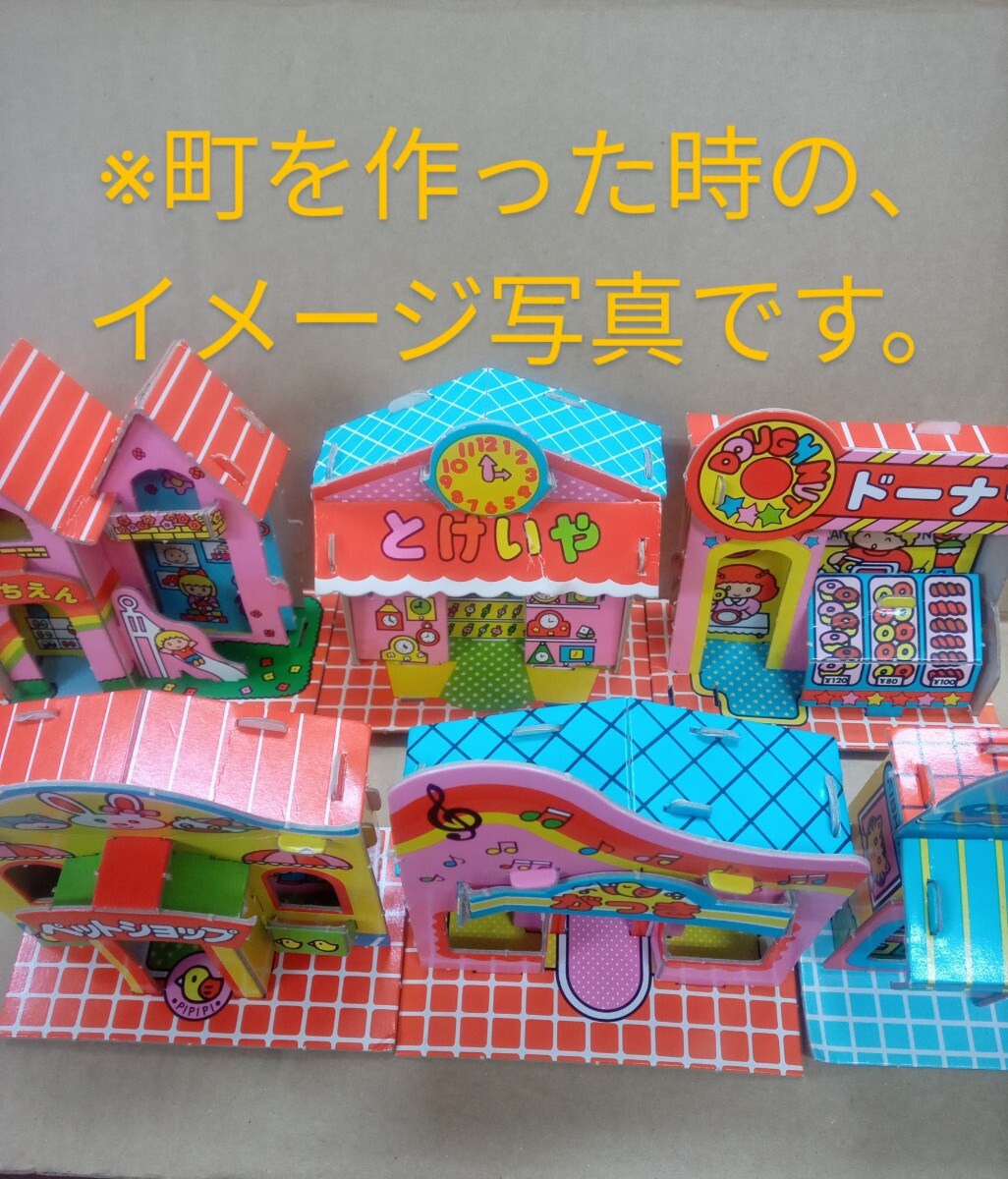 お店屋さんのペーパークラフトがおまけの食玩で、繋げて町を作るという夢いっぱいのアイテムです。