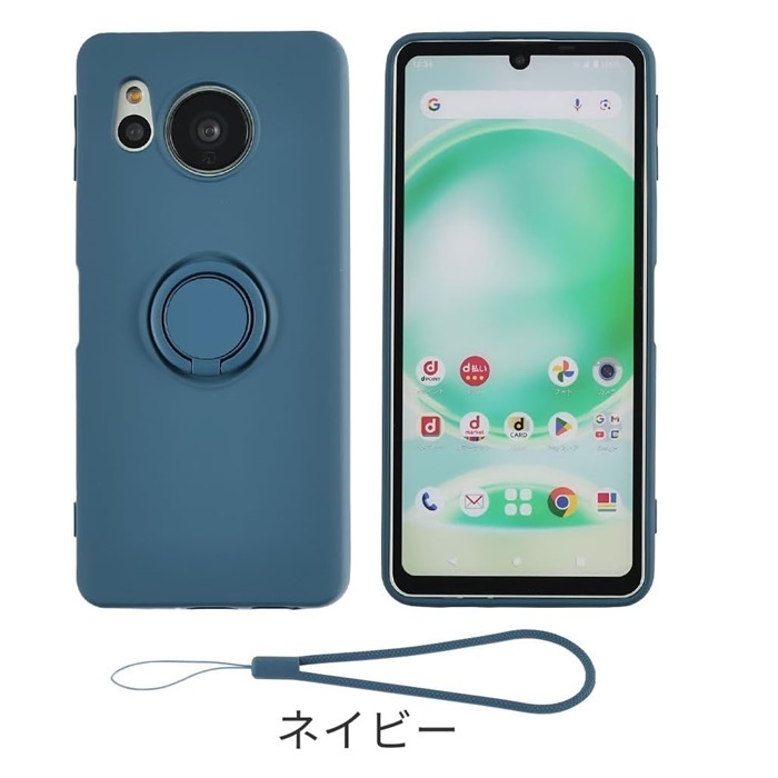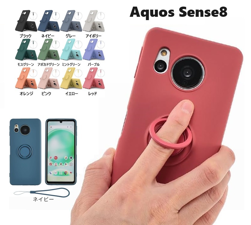 Aquos Sense8用 硬質シリコン ソフト リング付 バックカバー 保護ケース 衝撃吸収 落下防止 スタンド ストラップ付 |