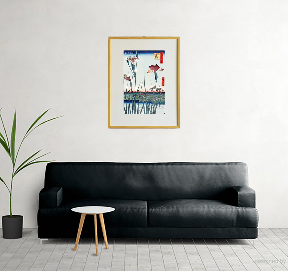 真作保証 東京都伝統工芸品  額装  歌川広重  木版画  #064 堀切の花菖蒲   初版1856-58年頃    広重の世界を唸らせた名構図!