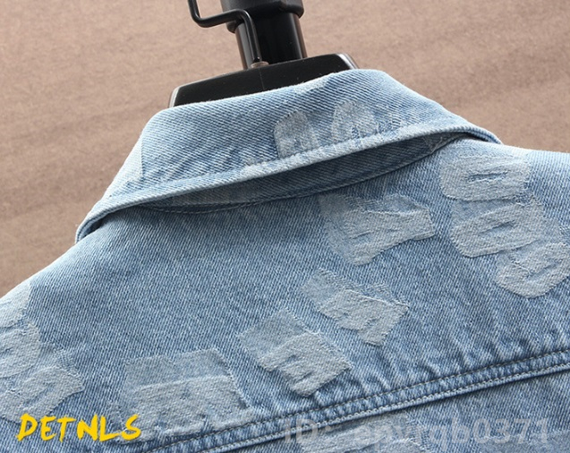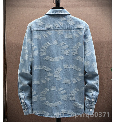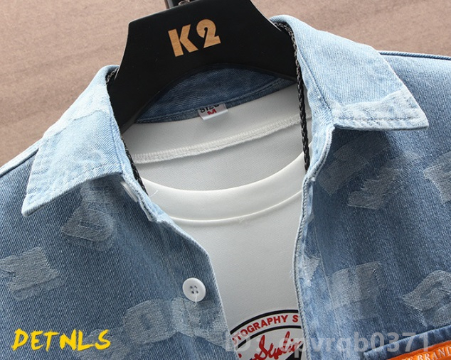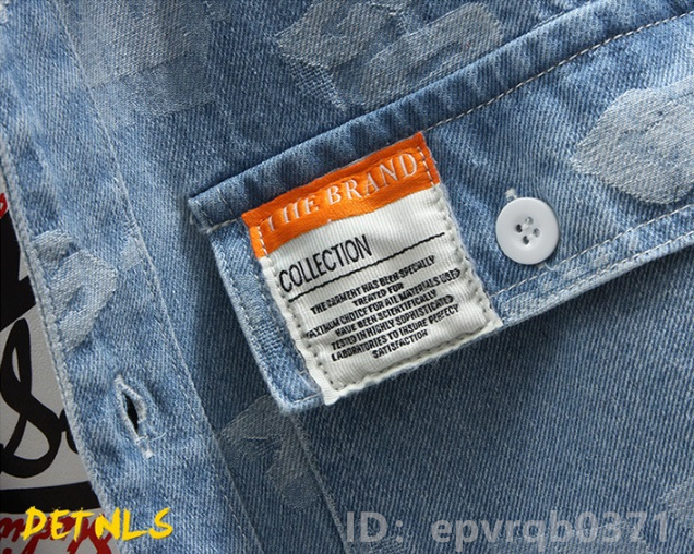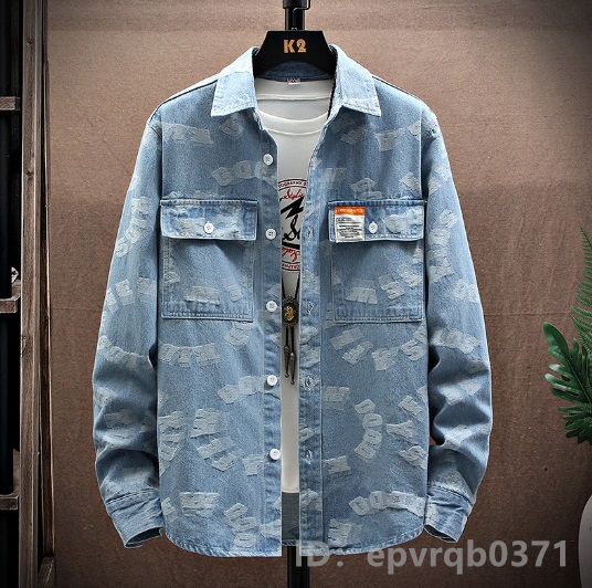 ジージャン 新入荷 メンズ デニムジャケット 長袖 折り襟 シャツ 英文字 紳士 トップス サイズ選択可能 青/Lサイズ