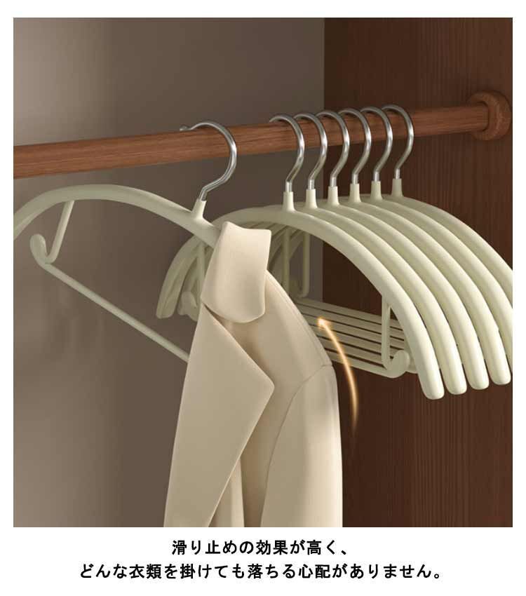 滑り止めの効果が高く、どんな衣類を掛けても落ちる心配がありません。