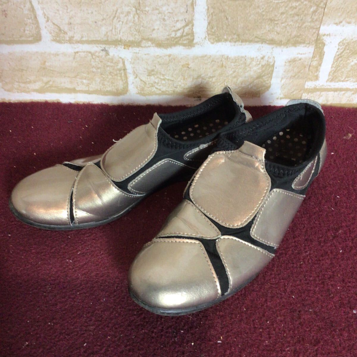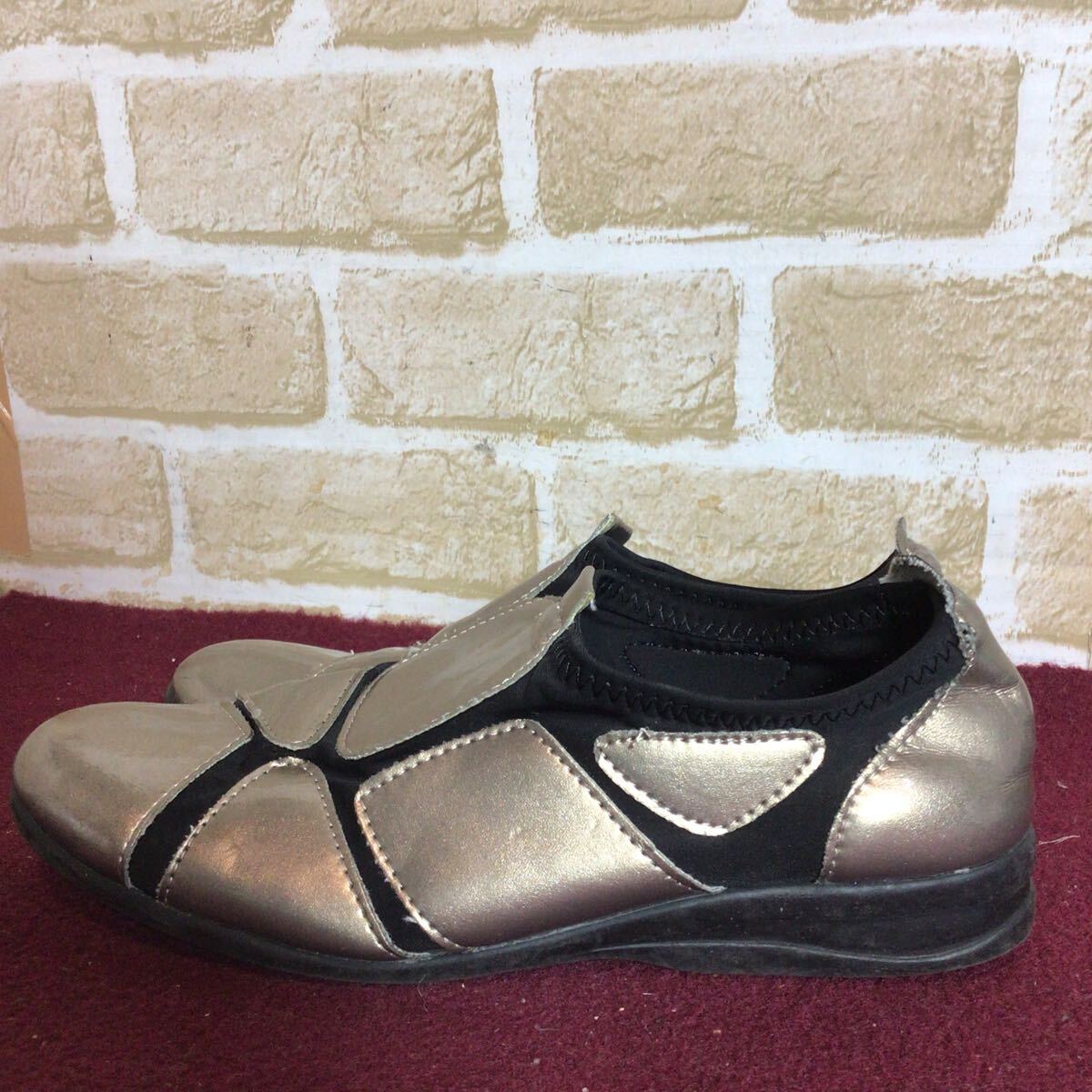 【売り切り!送料無料!】A-365 POPOLARE!ストレッチシューズ!エナメル!M!23.0~23.5cm位!おしゃれ!外反母趾!中古!