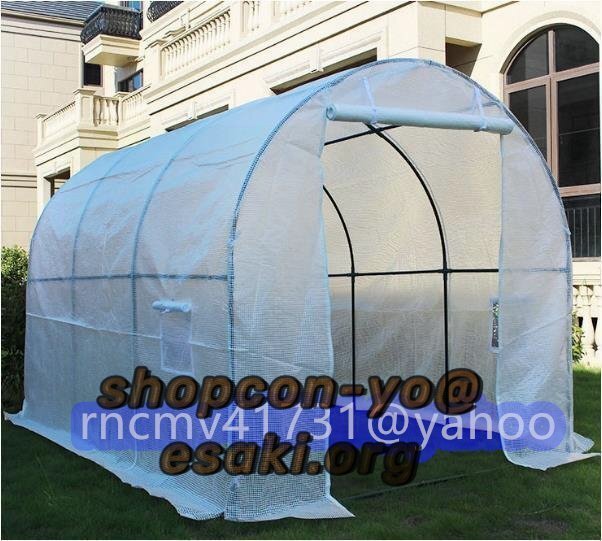 霜よけ 防鳥対策 PE素材 ビニールハウス 菜園ハウス 温室 グリーンハウス ガーデンハウス 間口2m×奥行3m×高さ2m スチールパイプ 保温