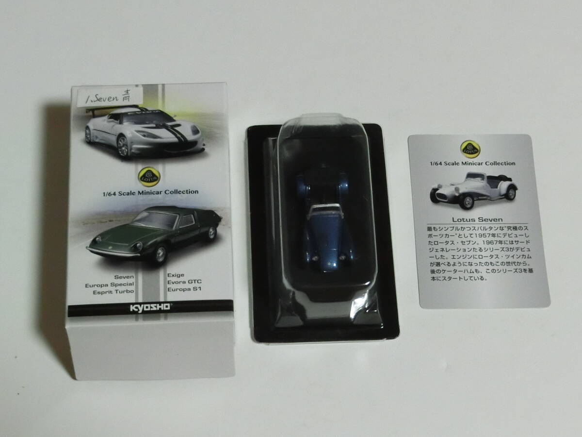 京商 1/64 ロータス ミニカーコレクション/1.Seven 青。外箱は、中身確認のため、開封済みです。ブリスター未開封、説明書あり。落札後はノークレーム・ノーリターンで御願いします。発送は定形外郵便もしくはゆうパックで対応させて戴きます。