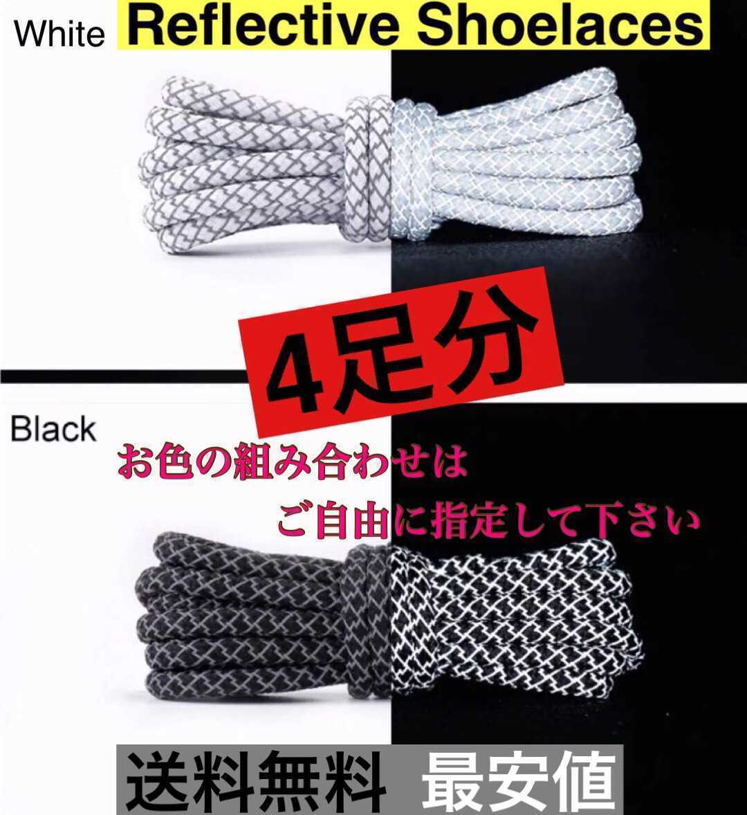 リフレクティブ/シューレース(靴紐)/ロープレース(丸紐)/ホワイトorブラック/120cm 光る靴ひも