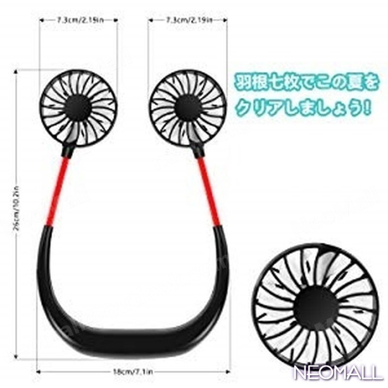 USB充電式 手ぶら扇風機 ホワイト 2000mAh電池 12時間連続使用 ☆ 首かけ扇風機 携帯扇風機 3段風量調節 首掛け 手ぶら 夏アイテム