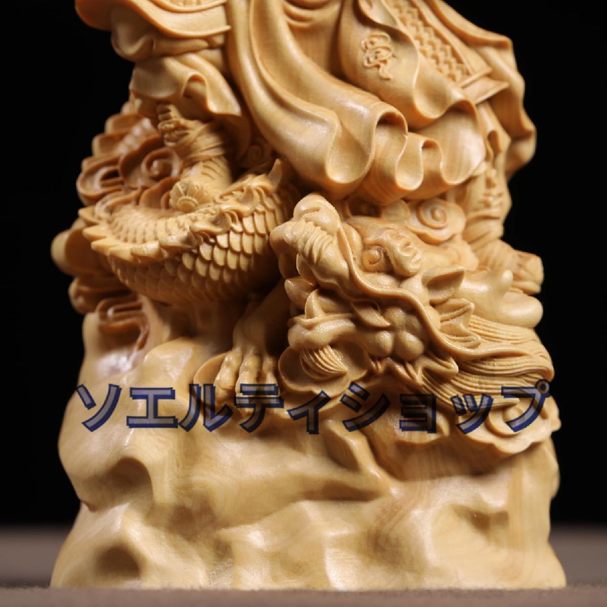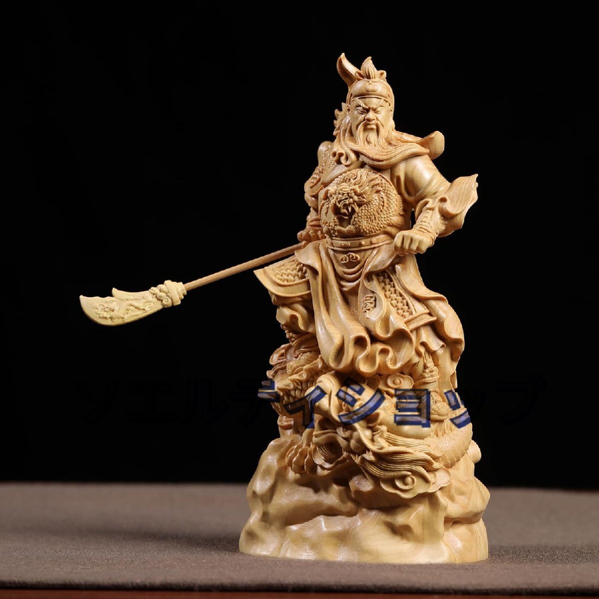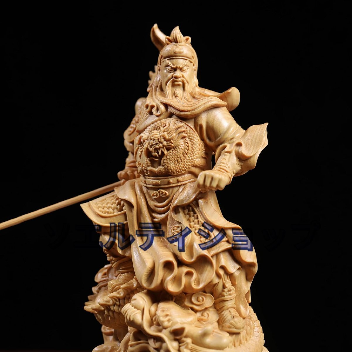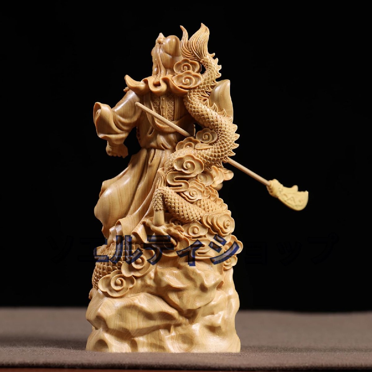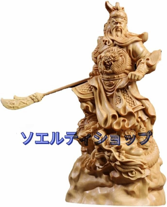 木彫り 置物 関羽置物 三国志 関羽像 関帝像 関公像 立像 騎龍関公 木製彫刻 仏像 神像 武財神