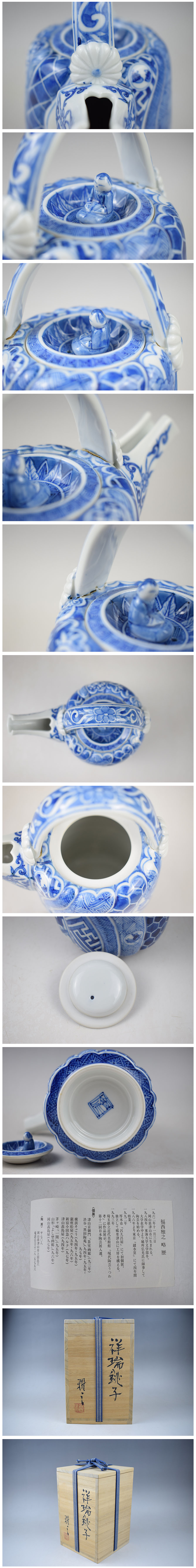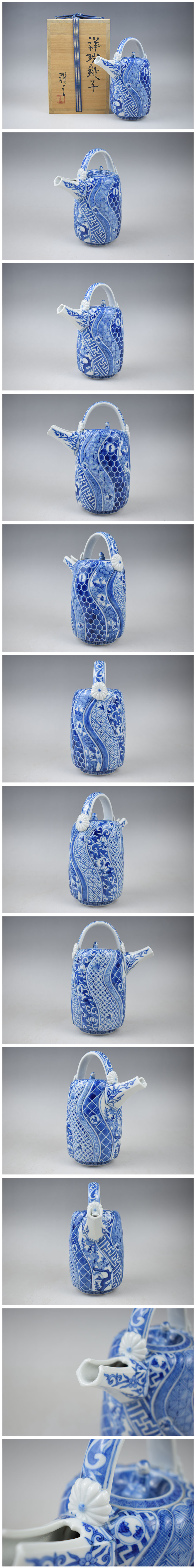 【福西雅之 祥瑞銚子 細密蓋付祥瑞染付 共箱 真作保証】