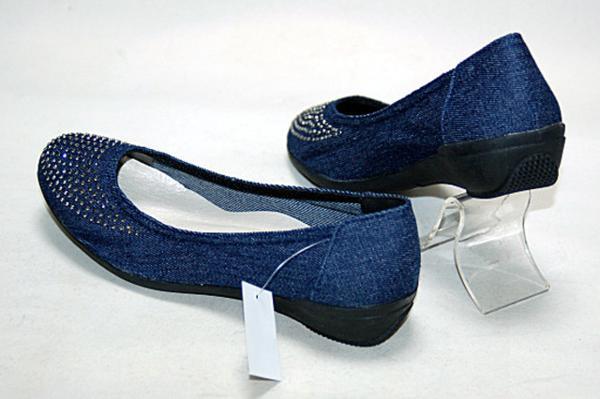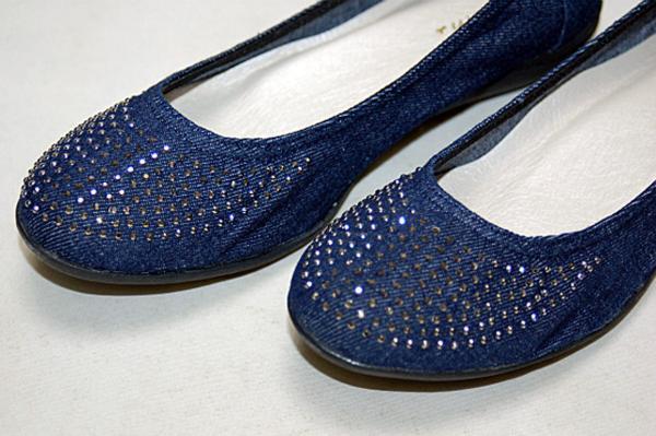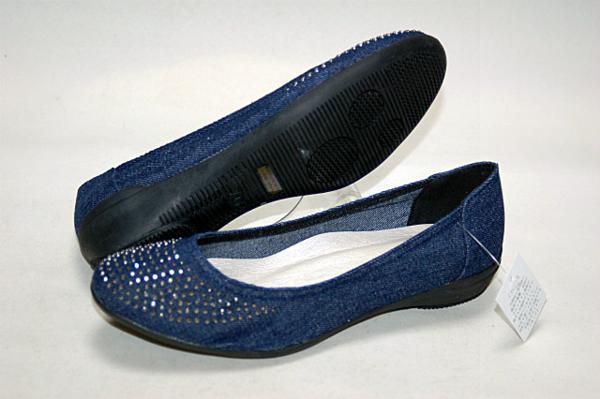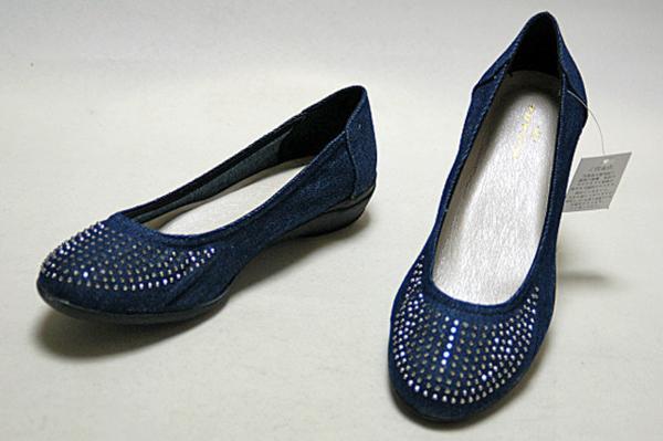 【低反発】きらきらリベット飾 足に優しいデニムバレエシューズ#1328 NAVY M◆新品