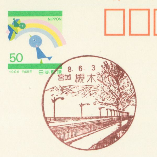 風景印☆初日☆宮城・槻木・H8.6.3・旧印・青い鳥1996