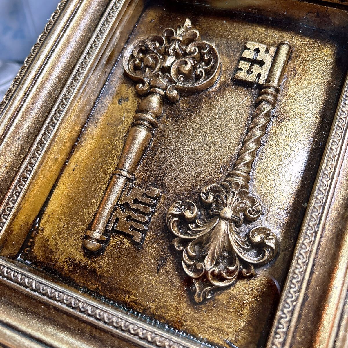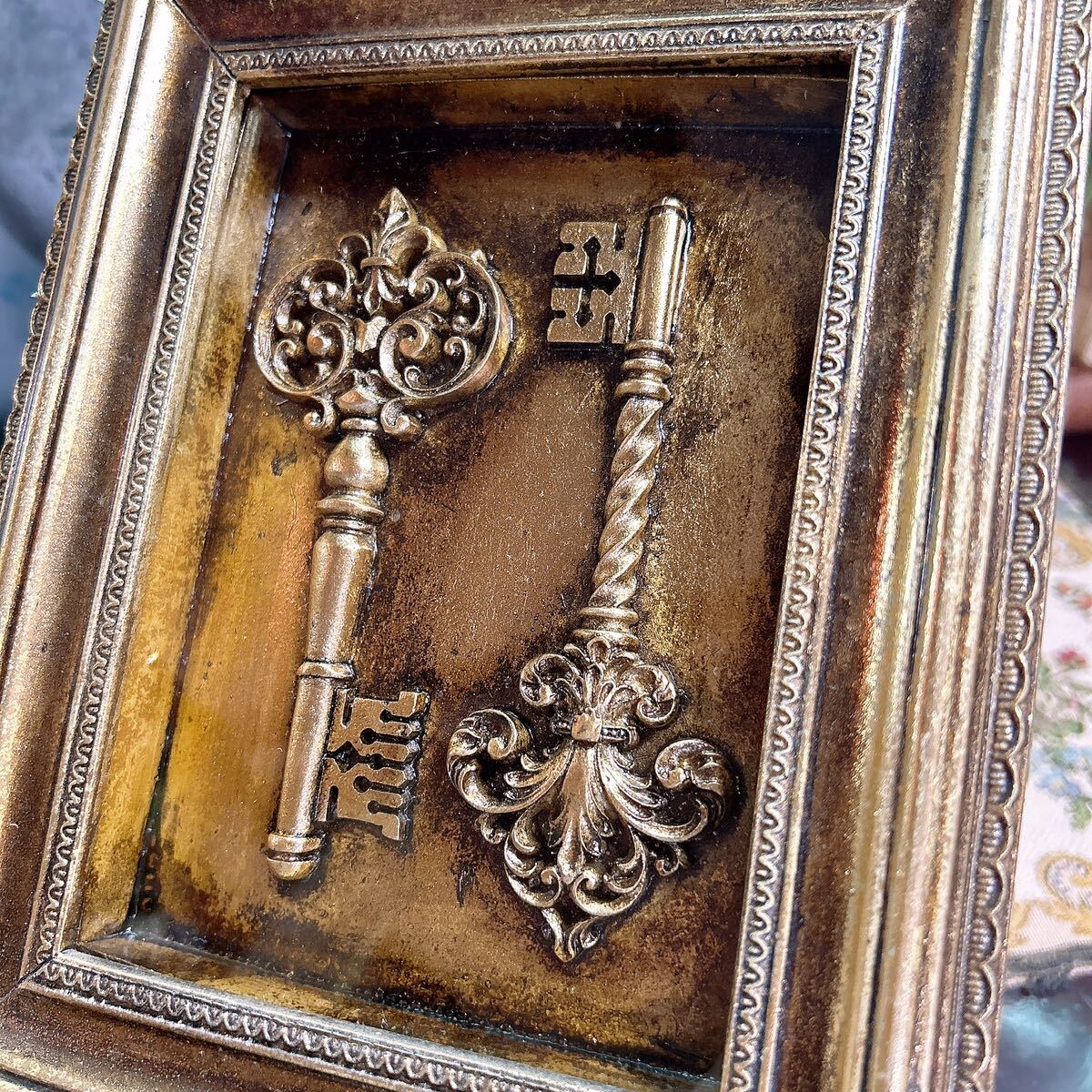 アンティーク調の #ブロカント雑貨 として大人気だったアンティークな鍵の額縁タイプのウォールデコレーションです(^^)