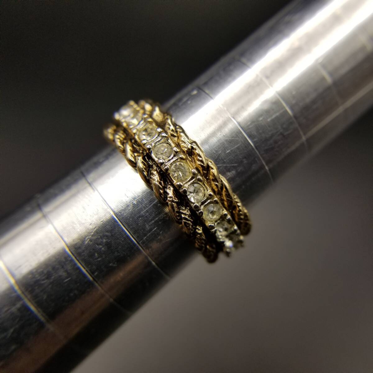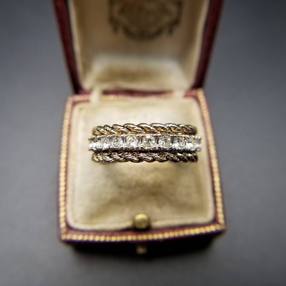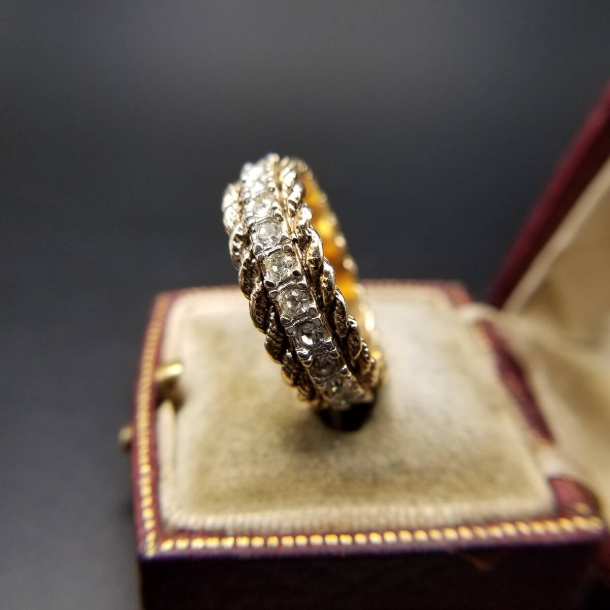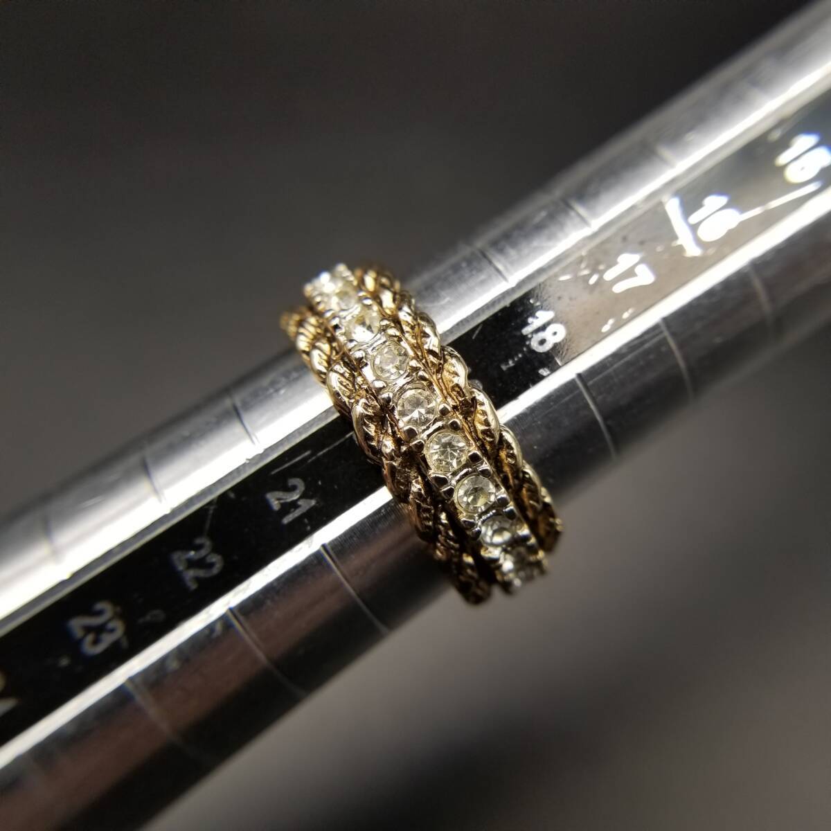 K18メッキ ロープ デザイン クリア ラインストーン エタニティ バンド ゴールドトーン 幅広 ヴィンテージ リング 指輪 Y16-A