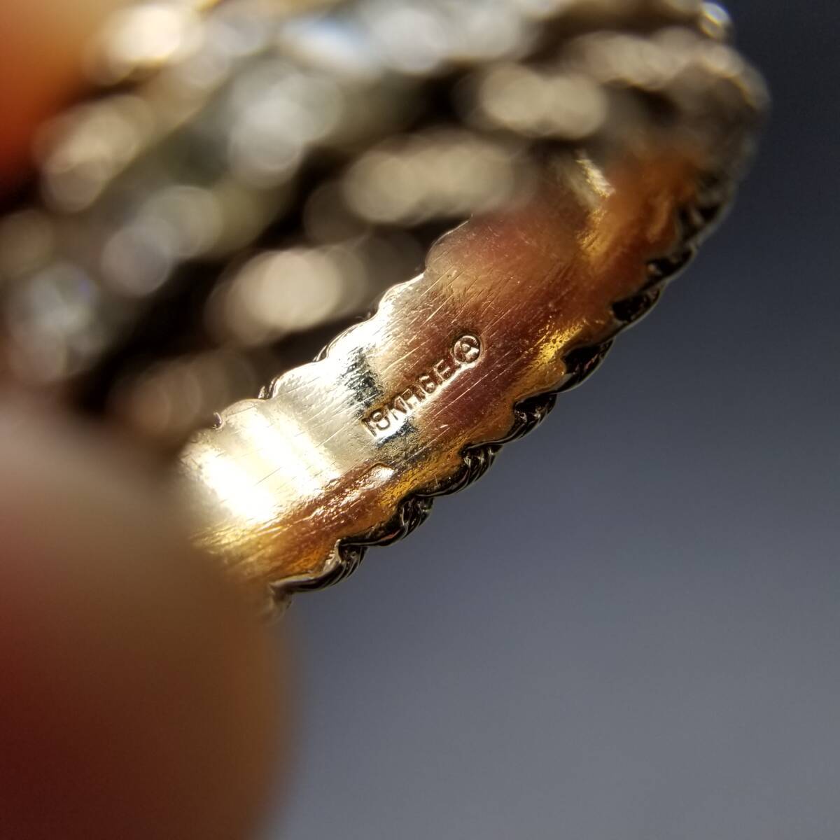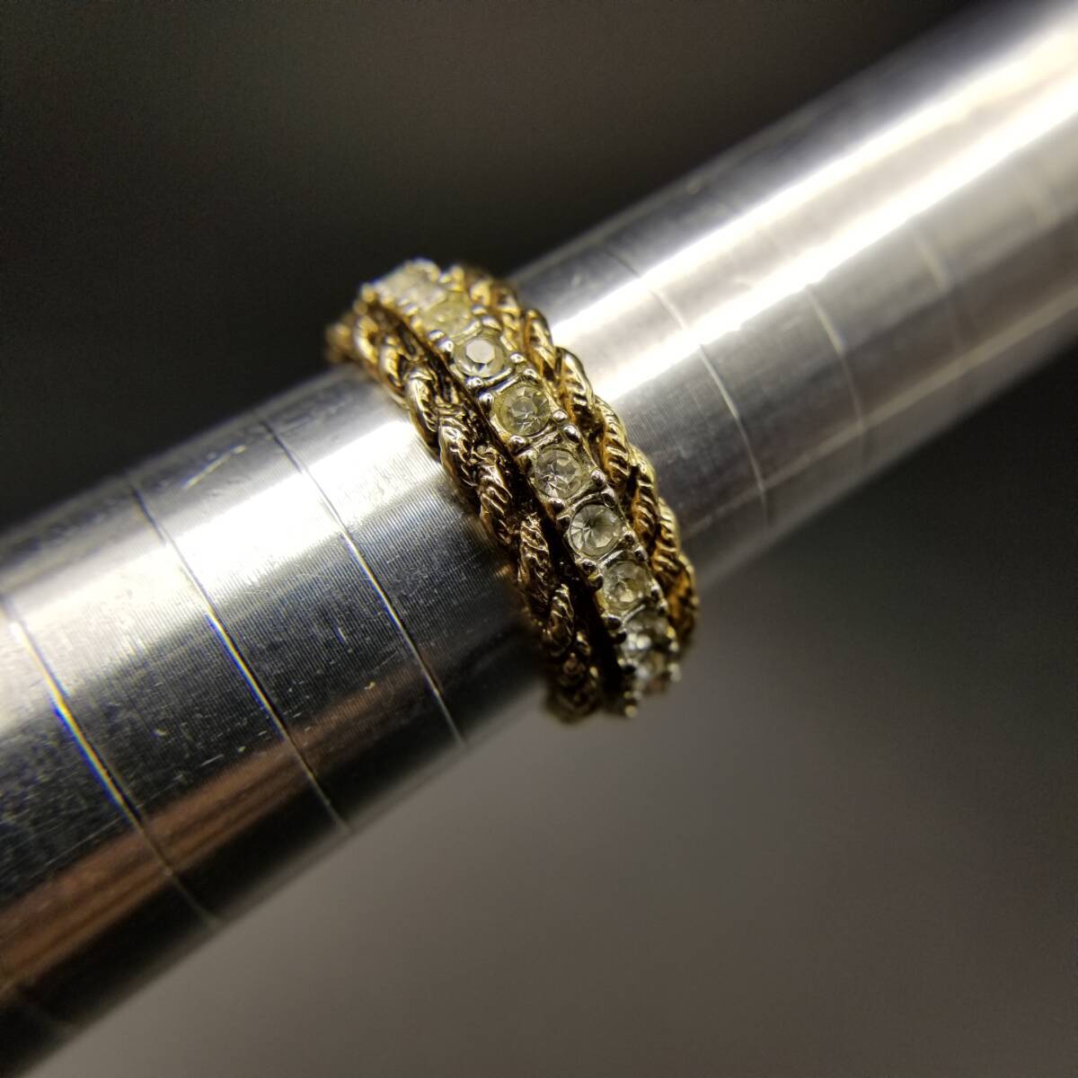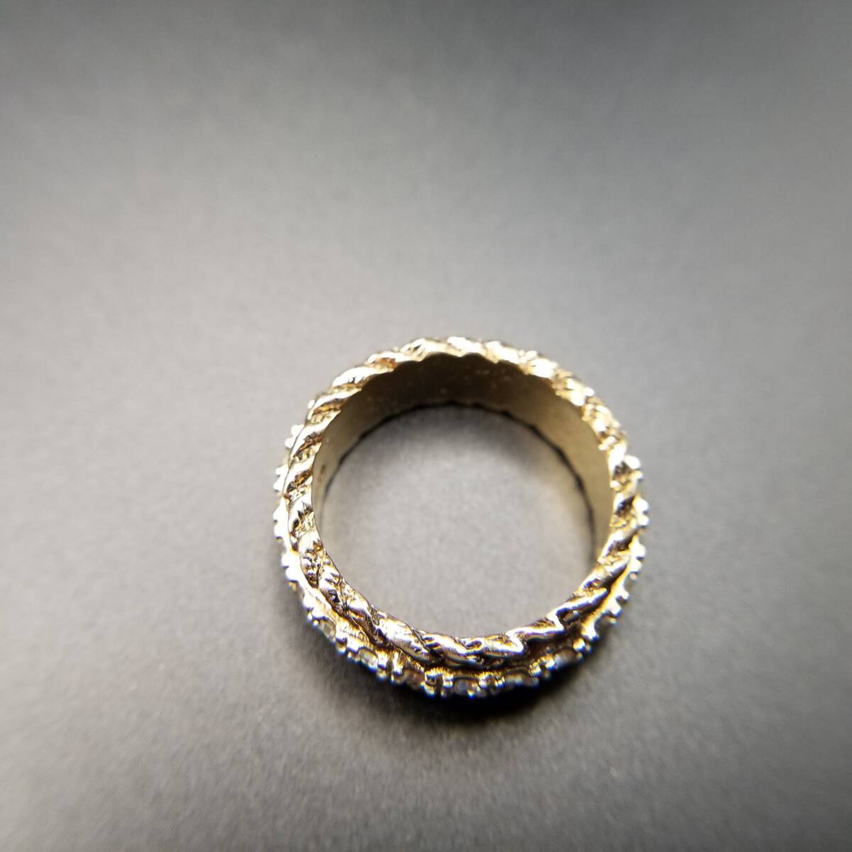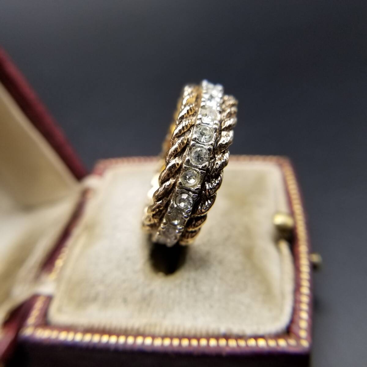 K18メッキ ロープ デザイン クリア ラインストーン エタニティ バンド ゴールドトーン 幅広 ヴィンテージ リング 指輪 Y16-A