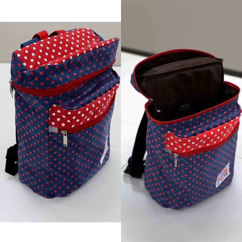 女の子に人気ブランドのシュープの可愛いスクエア型ドット柄のリュックサックです。背面、底面、上面、ショルダー部に厚手のクッション素材入り。ショルダー裏面はメッシュ加工されてます。程よいサイズ感で、通学やレッスン、タウンユースにおすすめ!