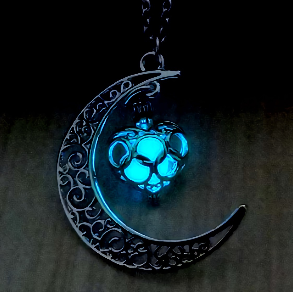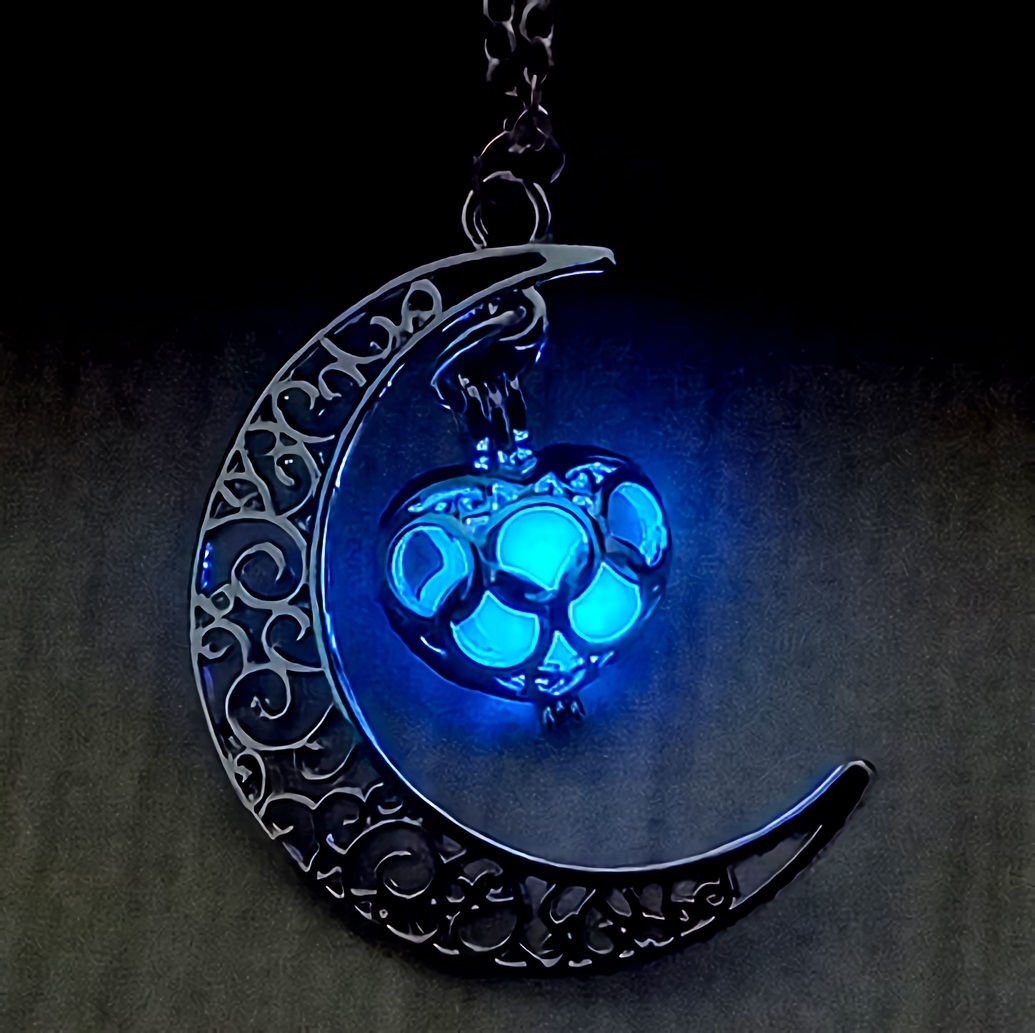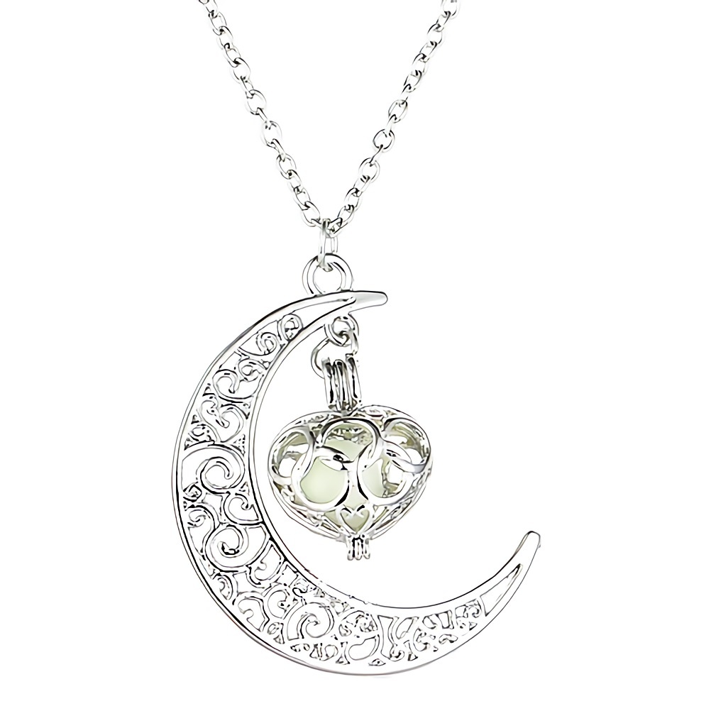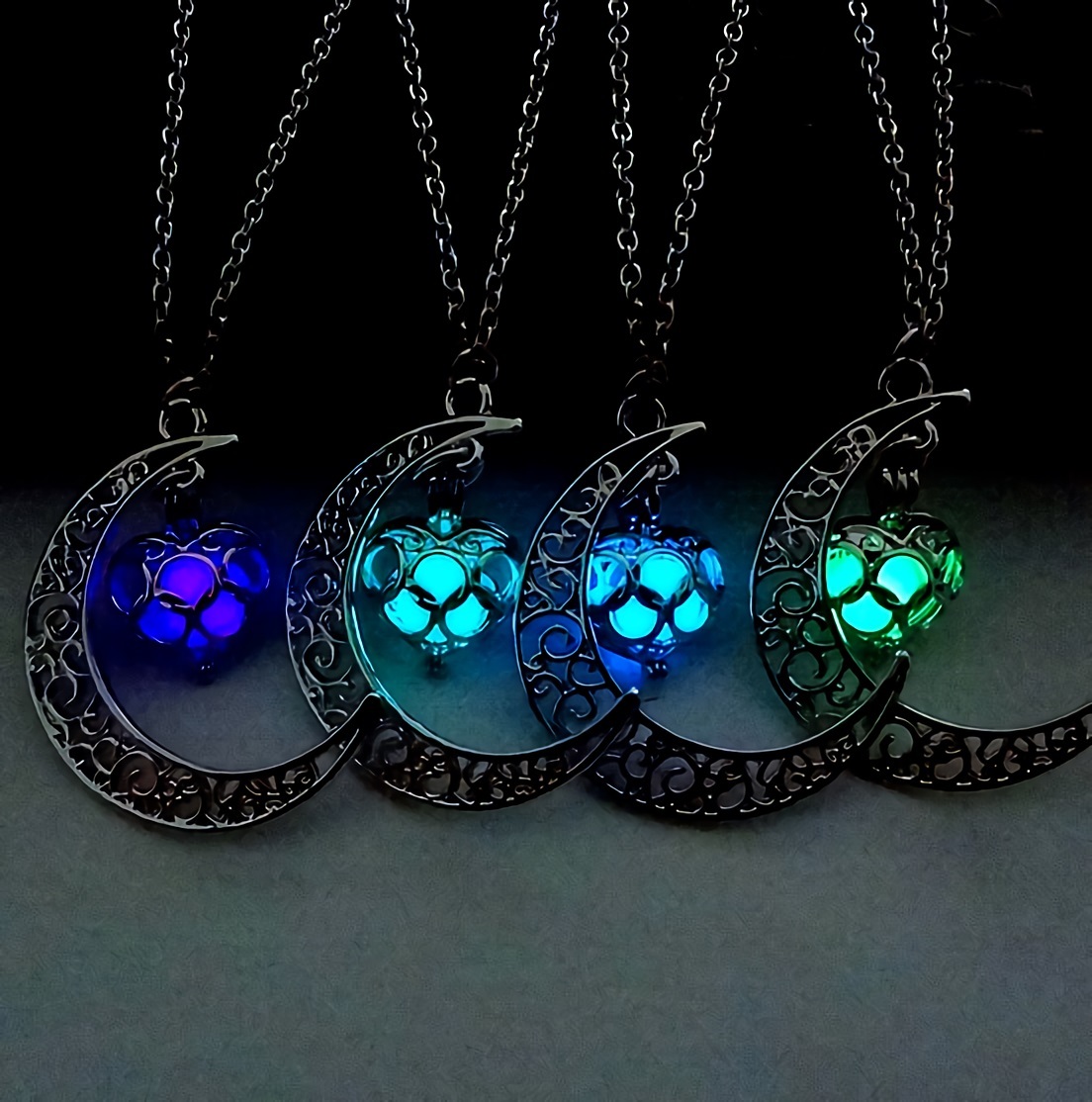 新品★送料無料★暗闇発光 4種水紫緑青 月夜光ハートプラチナ仕上シルバーネックレス誕生日プレゼント旅行連休花見初春ギフト国内発送