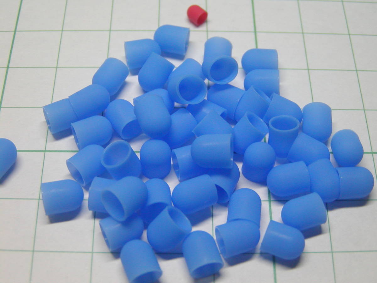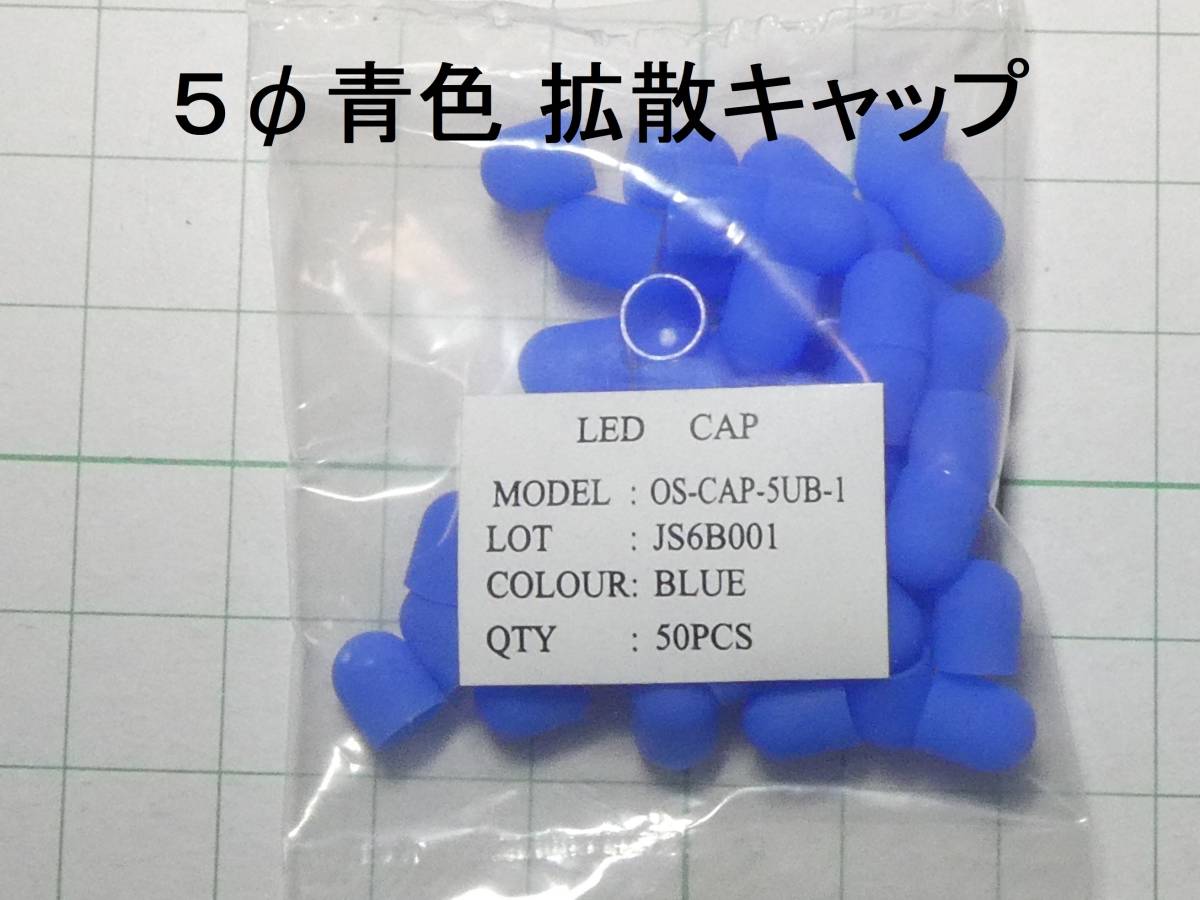 【5φ拡散キャップ】 超高輝度LEDは、照射する角度が狭いので、 このLEDキャップをLEDに取り付けると、光が拡散されて横方向にも光が広がります。 ・サイズ: 5φ用 ・ 色 : 青色 ・数 量: 1袋 50個入り ◆写真.2 赤色(3φ)は、比較用で含まれません。 | |