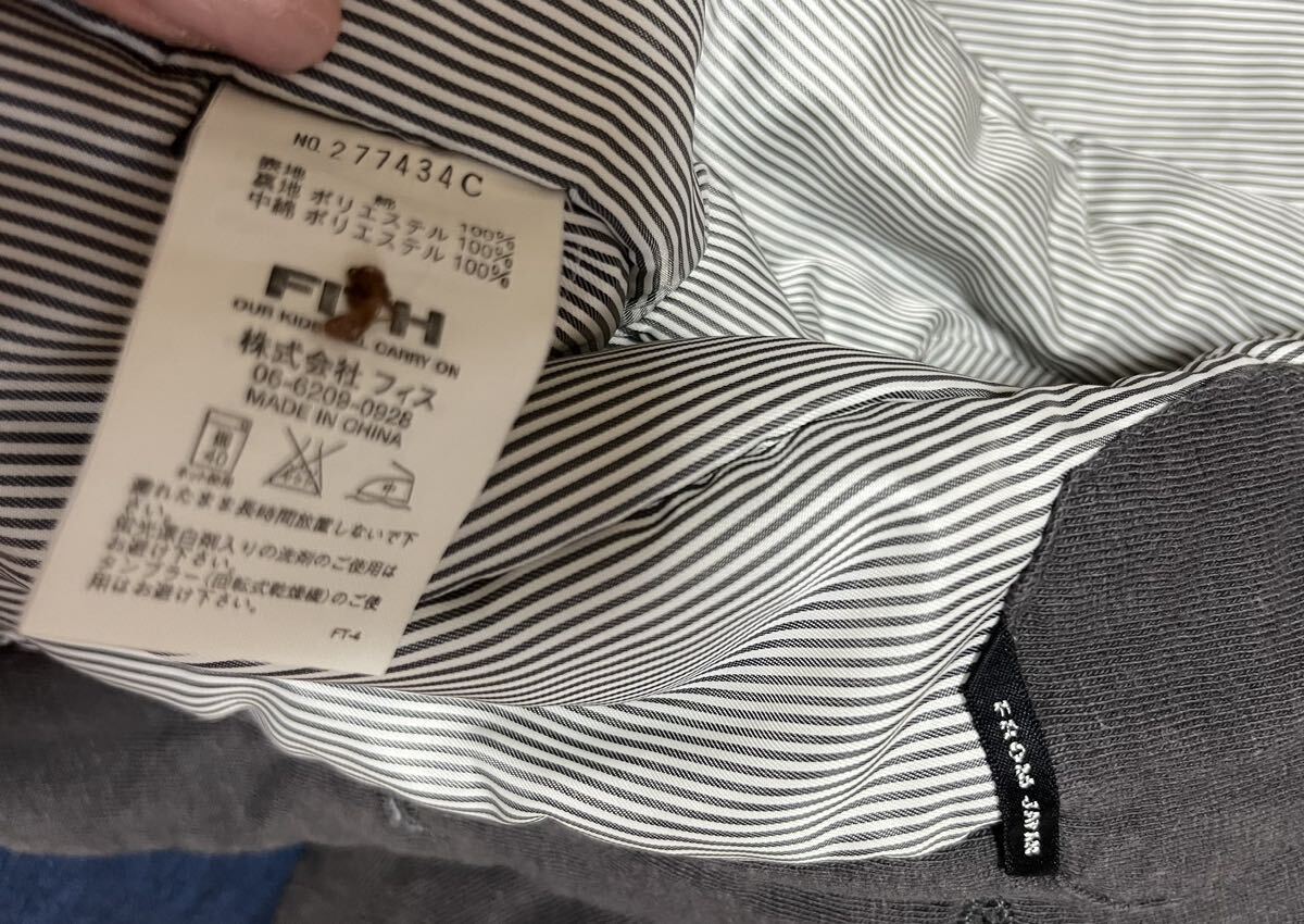ブランド特有の元々のユーズド感もありますし、色褪せ、袖や前見頃に薄汚れなどの着用感が少し見られます。写真をご参照ください。