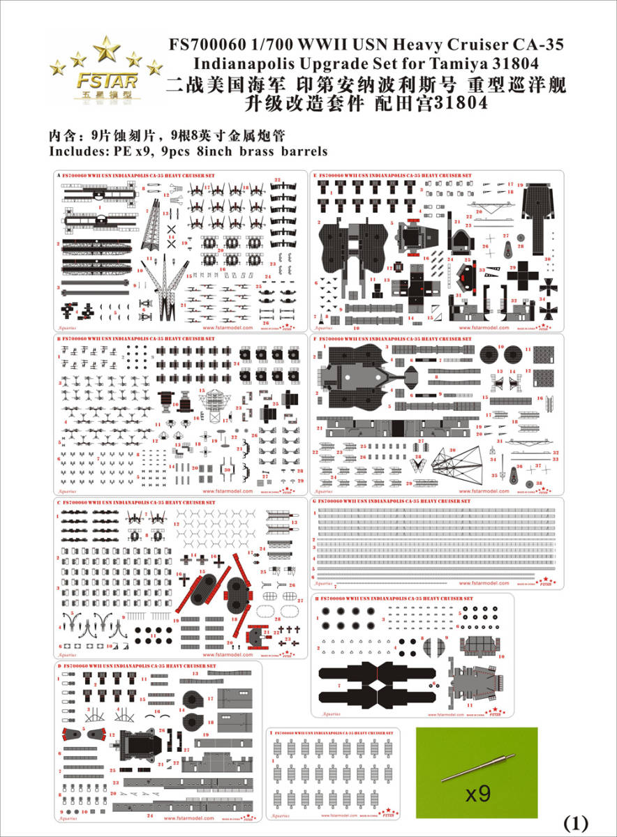 1/700 WWII アメリカ海軍 重巡洋艦 CA-35 インディアナポリス用ディテールアップセット |