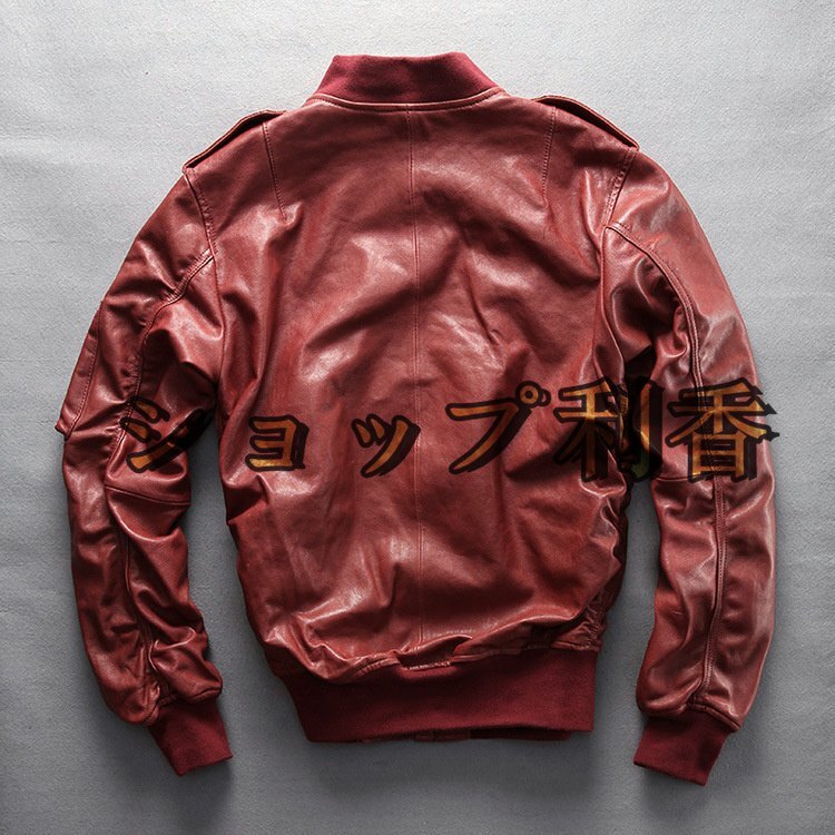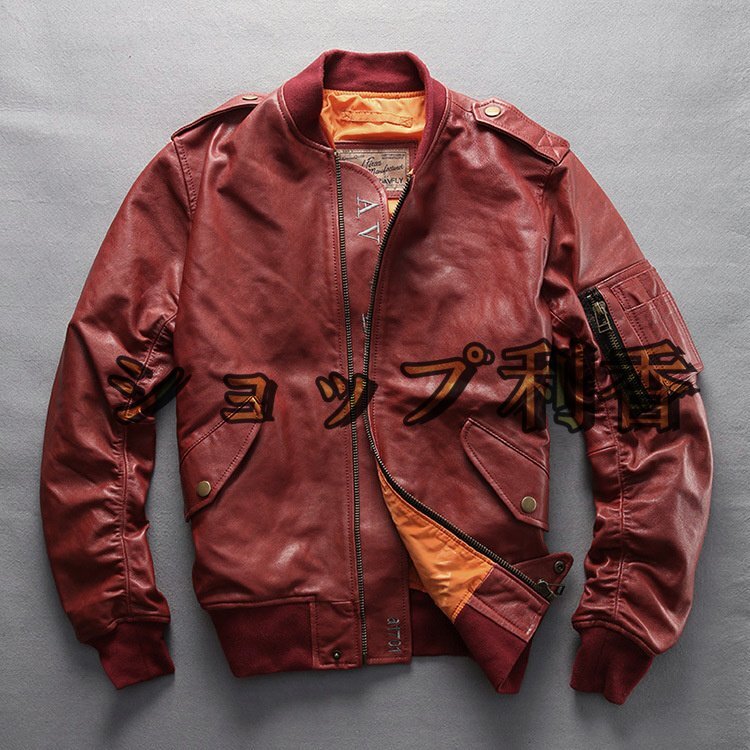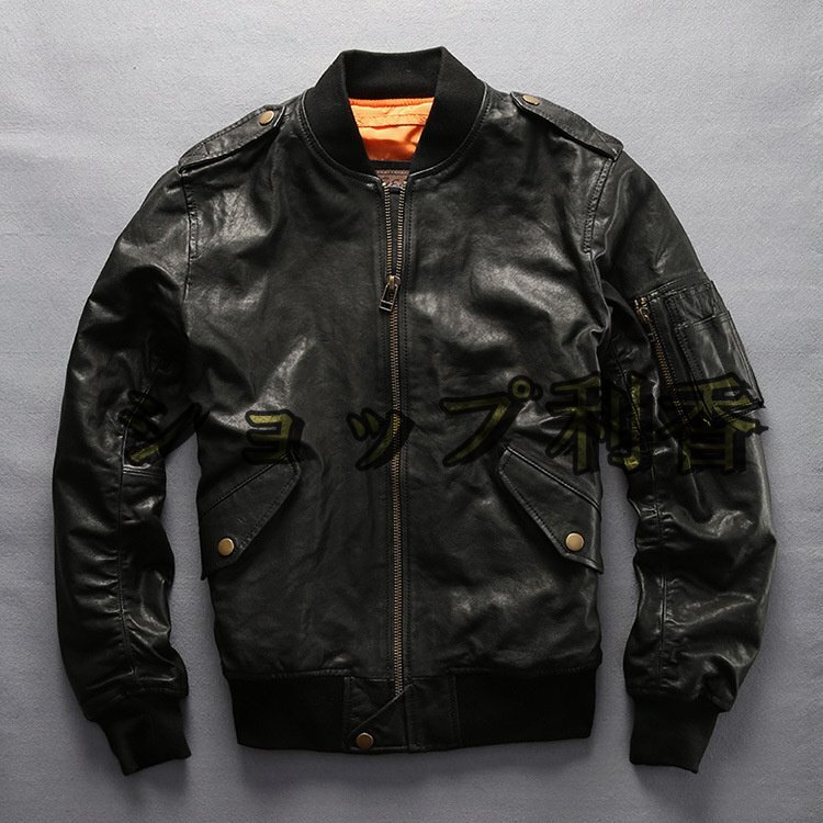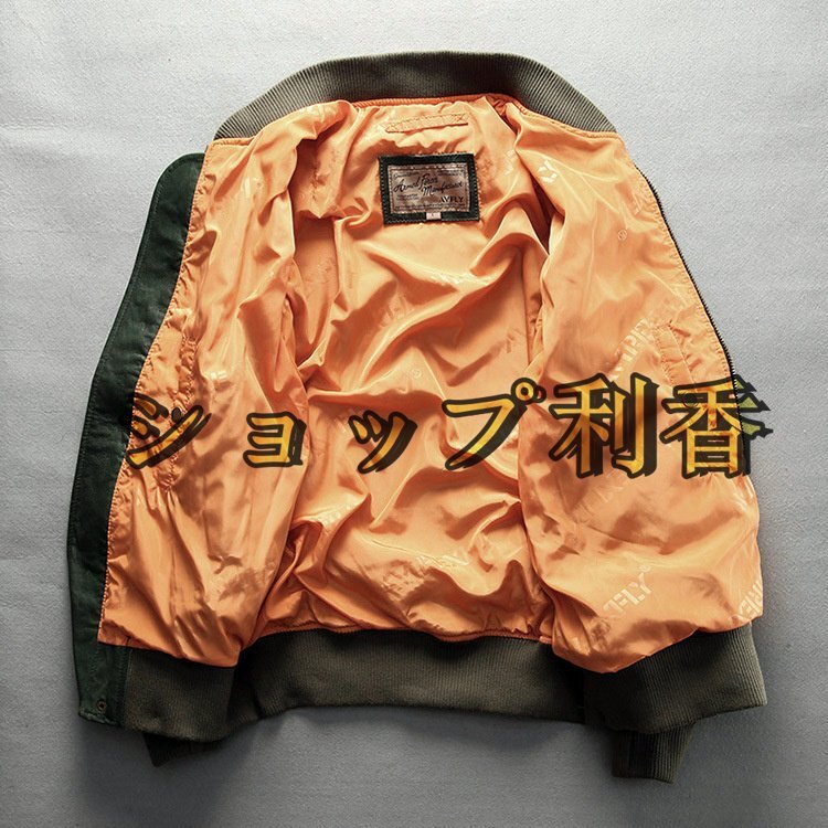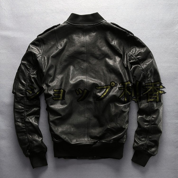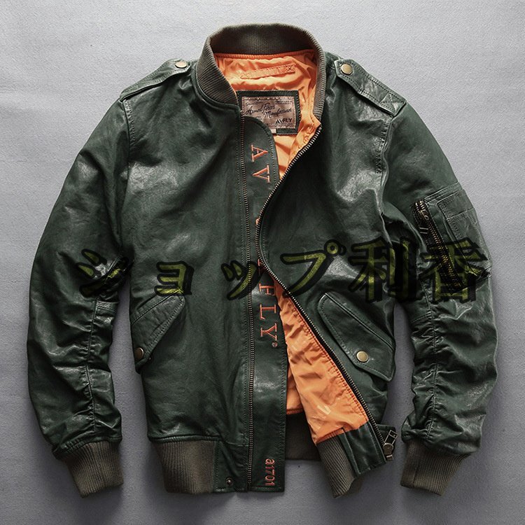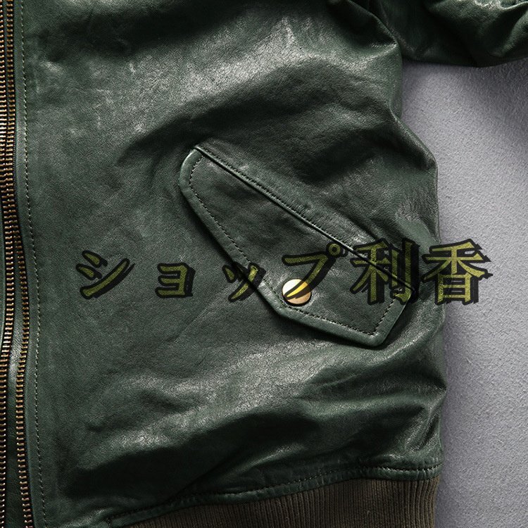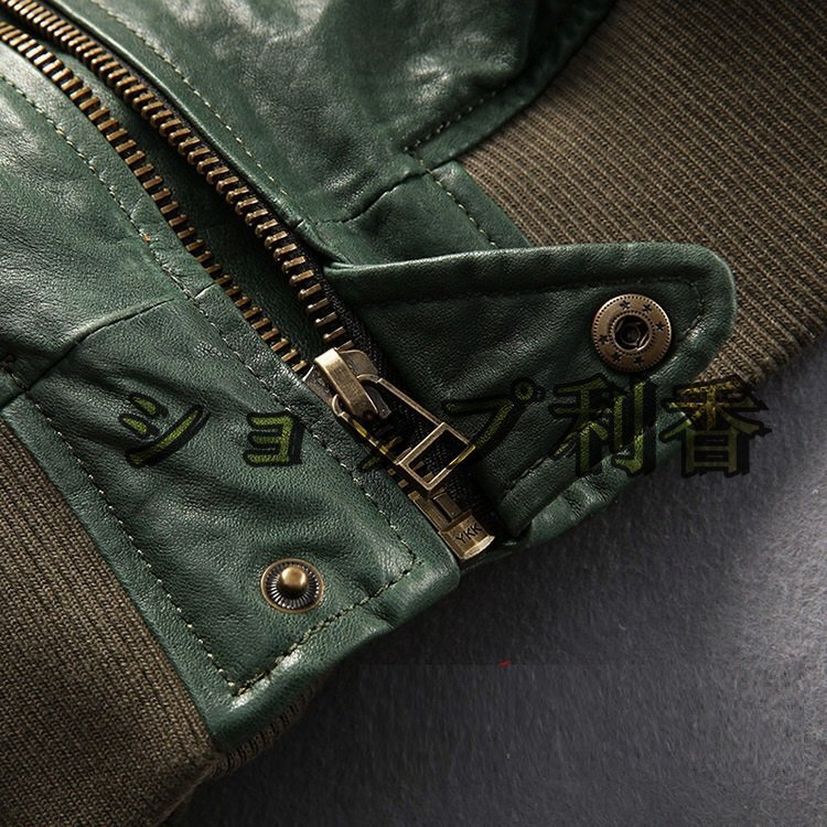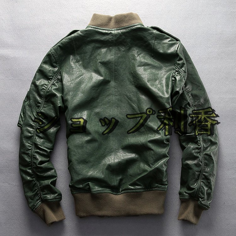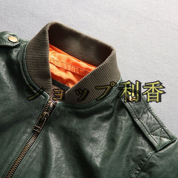 レザージャケット メンズ 刺繍 フライトジャケット 高級 柔らかい羊革 本革 上品 革ジャン 春秋 M~5XL 緑