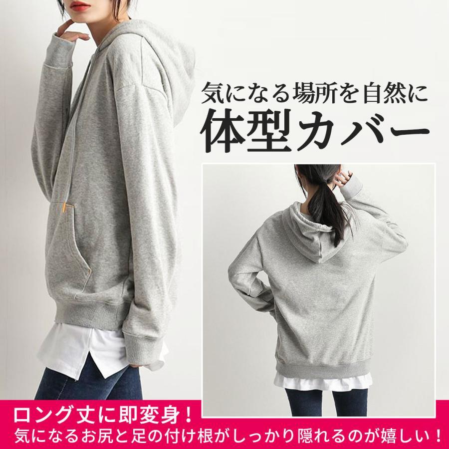 【付け裾 ホワイト M】つけ裾 レイヤード 重ね着風 体型カバー スリット おしゃれ シンプル インナー トップス ウエストゴム ゆったり
