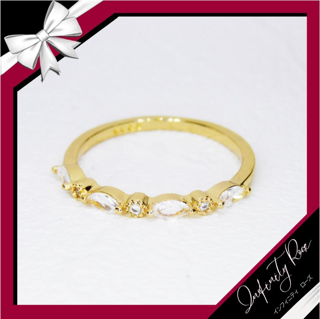 (R068G)21号 ゴールド重なり合う小粒エンゲージリング  高価爪留指輪