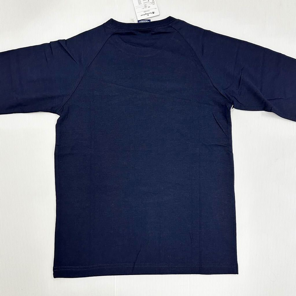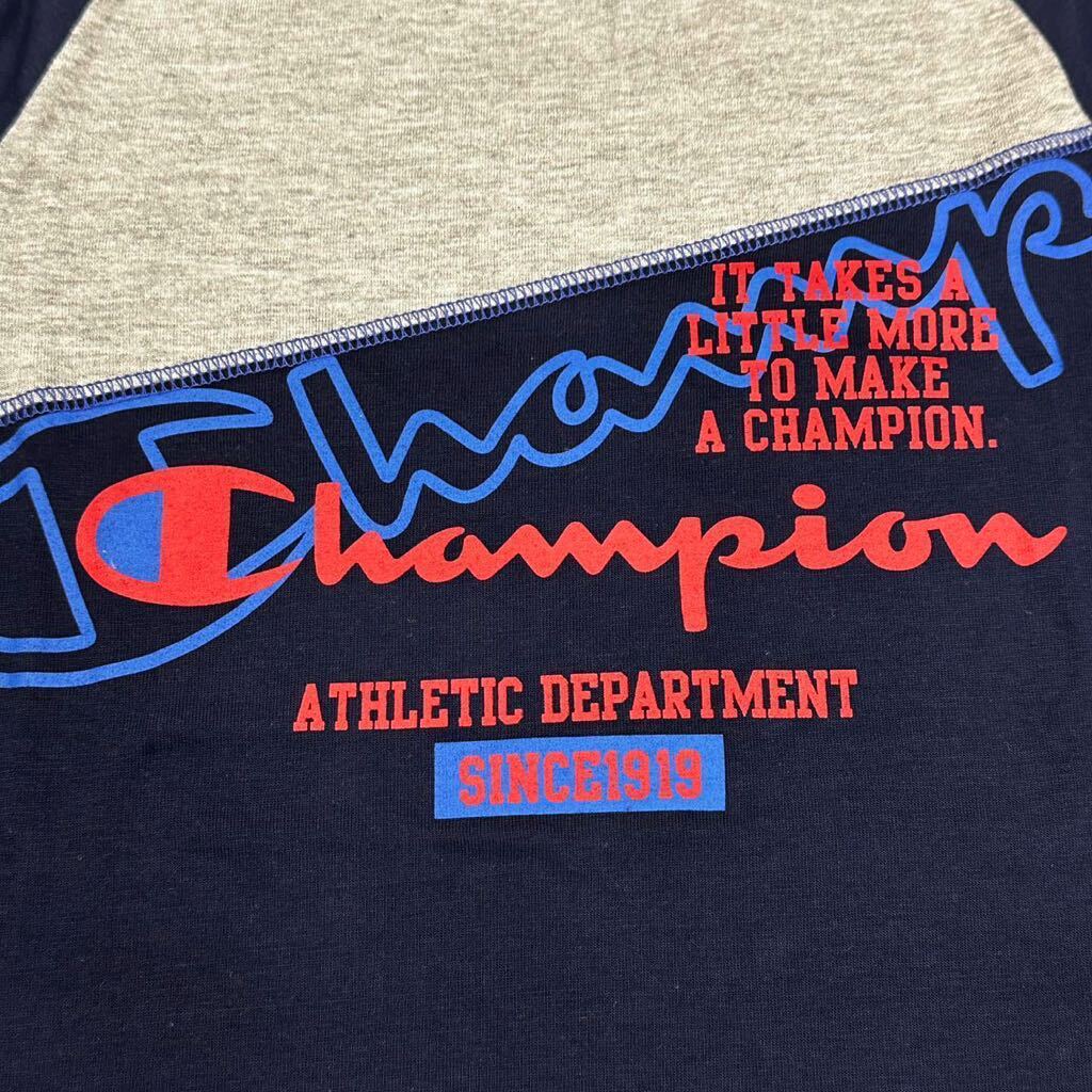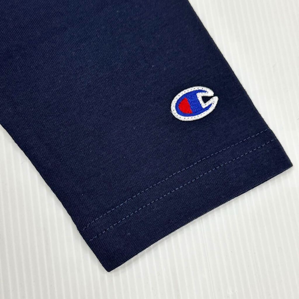 新品18647 Championチャンピオン160cm 紺ネイビー グレー配色 長袖Tシャツ 胸プリントロゴ丸首Tシャツ オールシーズンキッズジュニア ロンT